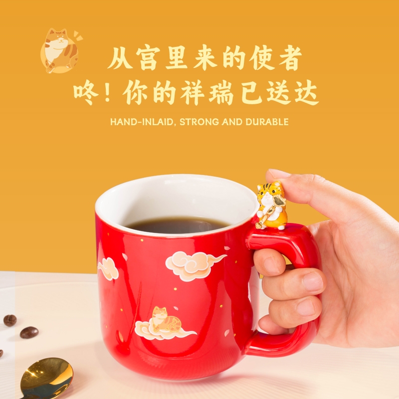 大气有度 心意之选 故宫 宫猫送福·马克杯;3D立体宫猫 铜胎画珐琅工艺;怀抱如意 全铜镀金