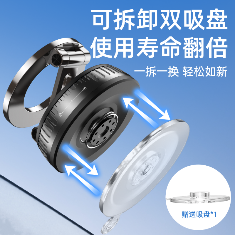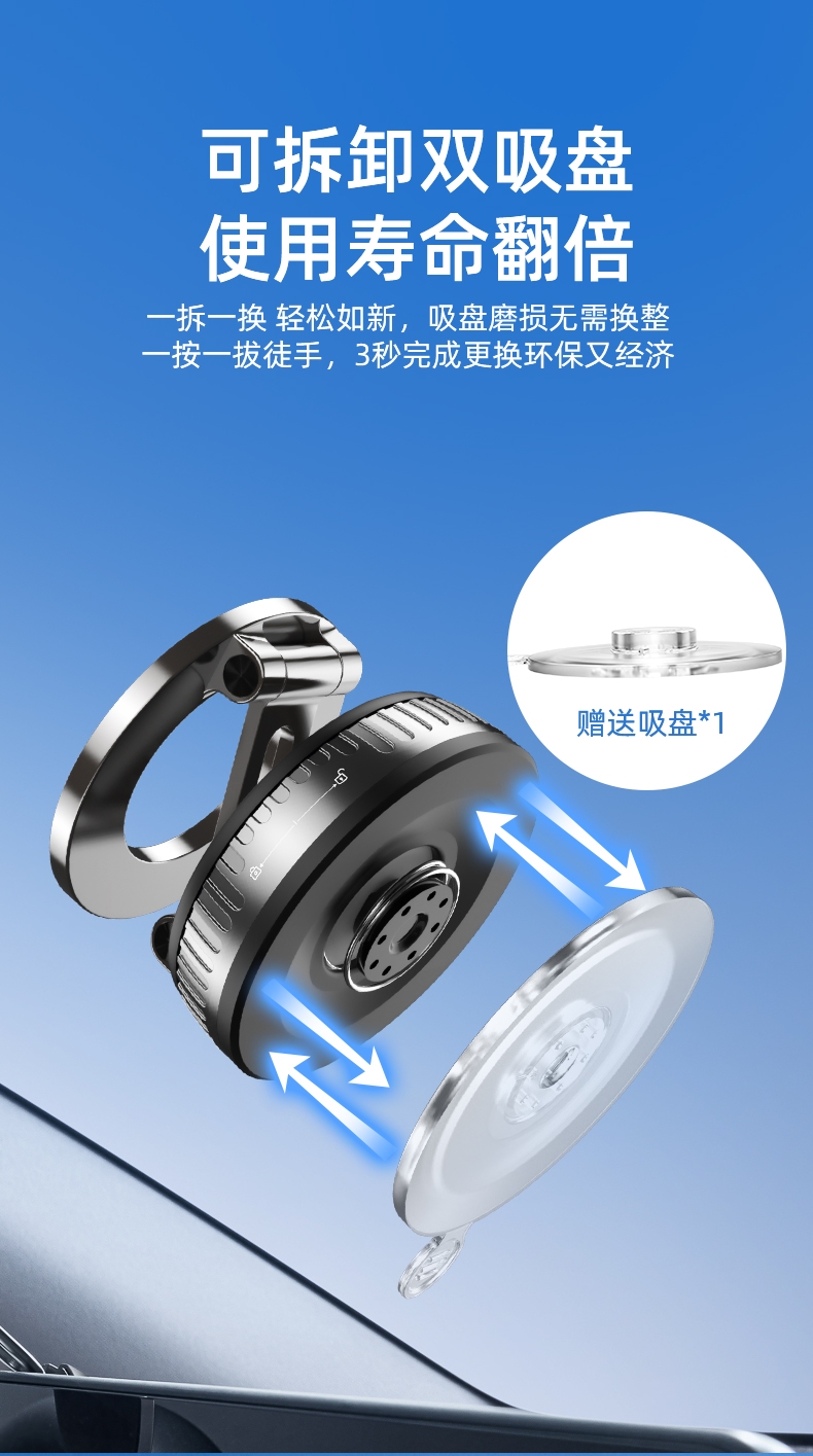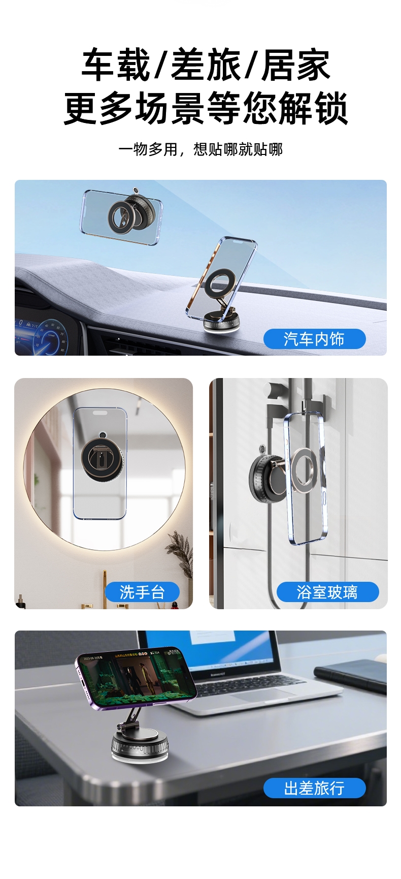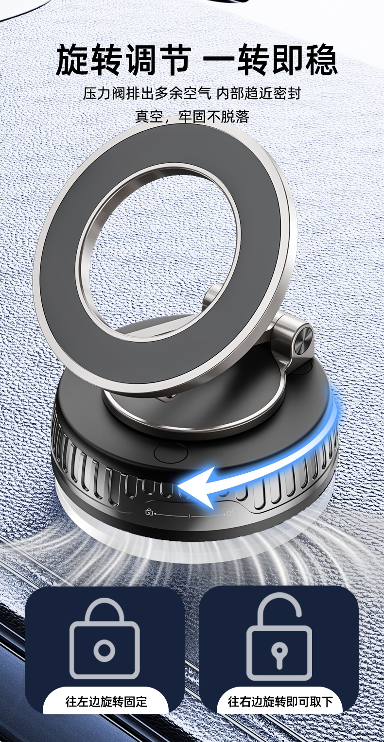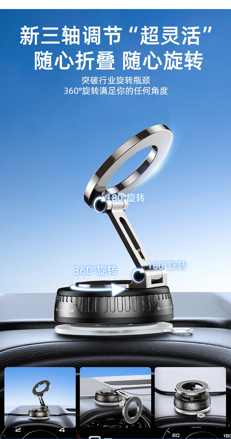 双圈N52 强悍磁吸;3M纳米滴胶,一按即稳,吸力强;三轴调节,随心调节