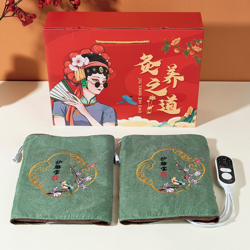 产品配置:电加热护膝宝*2只(含布套、加热芯、艾绒中药垫、开关) 精美礼盒*1个