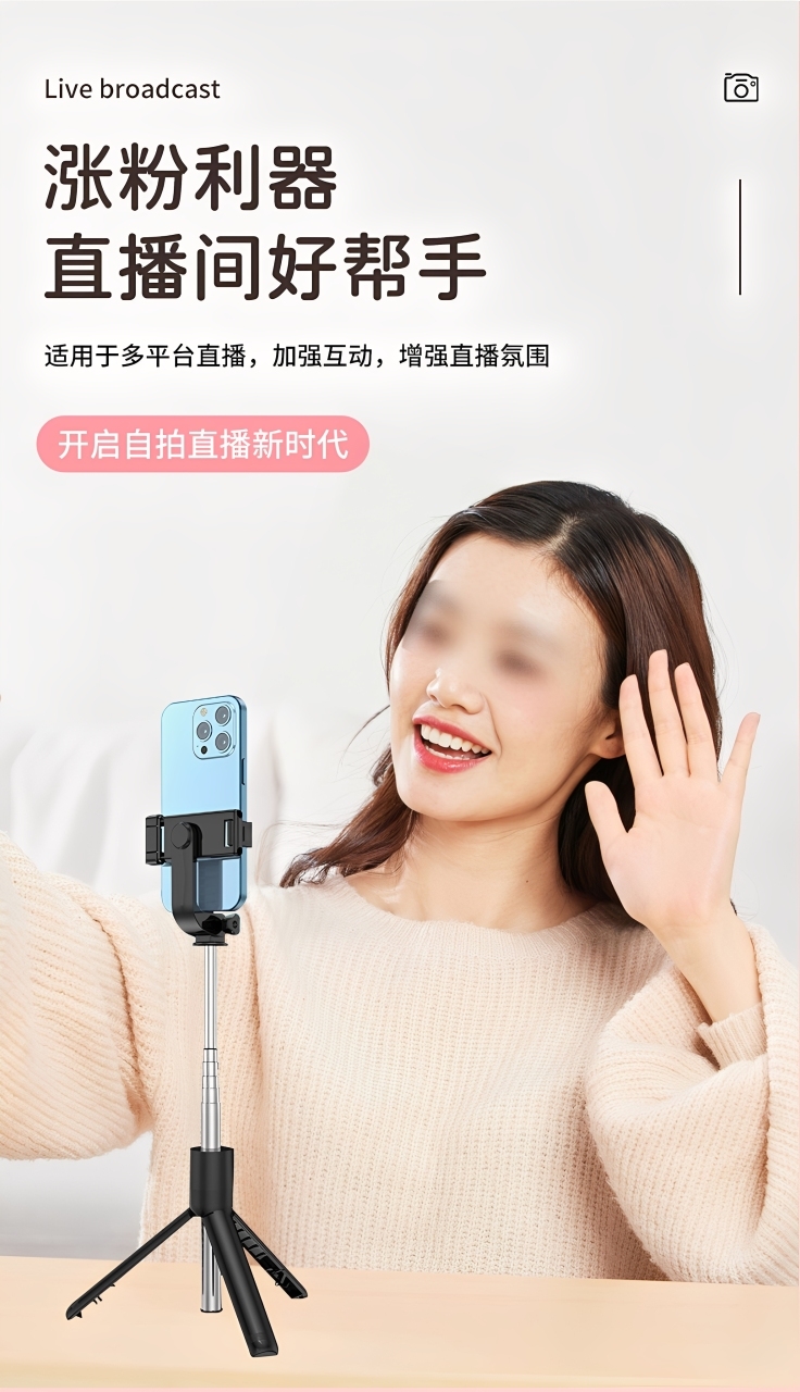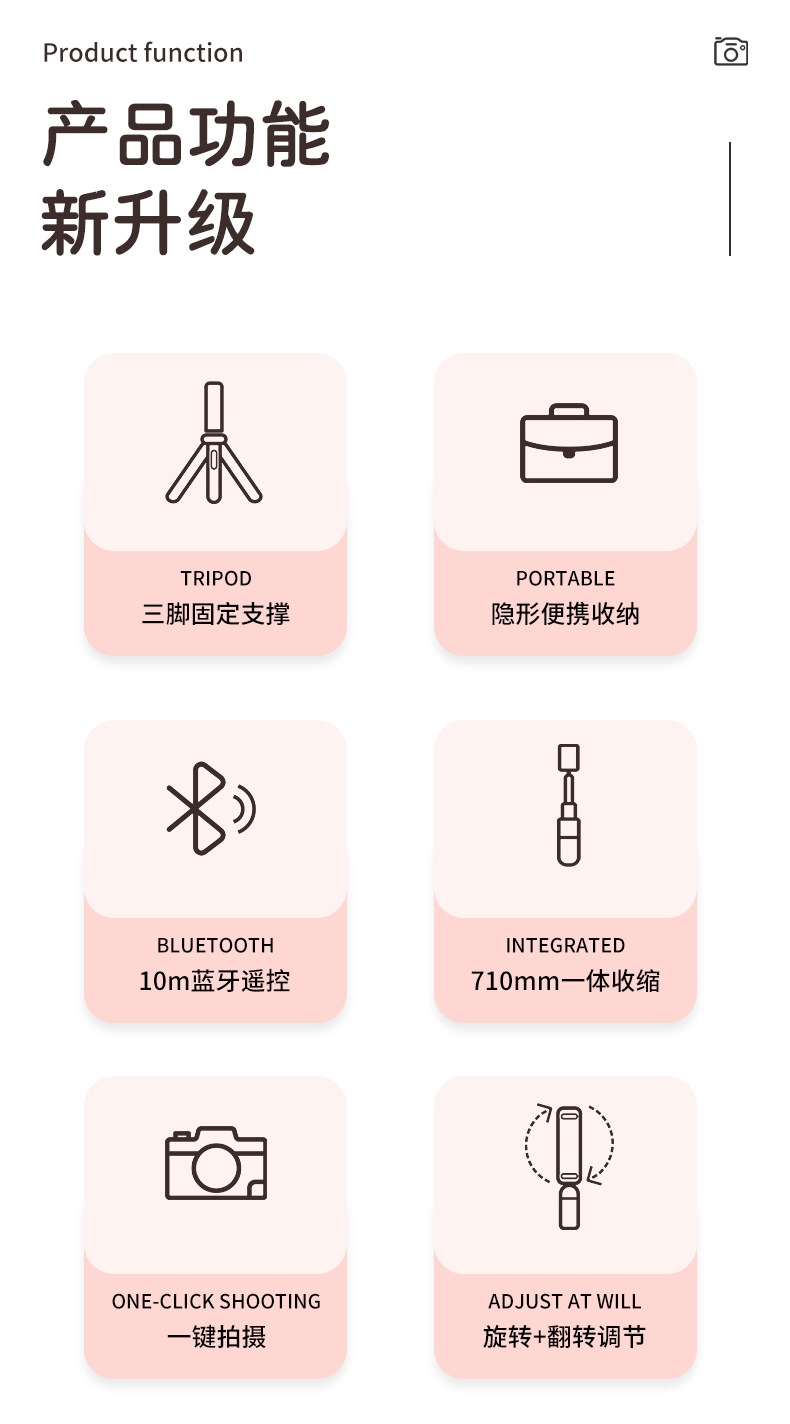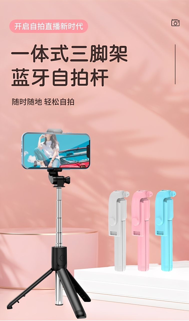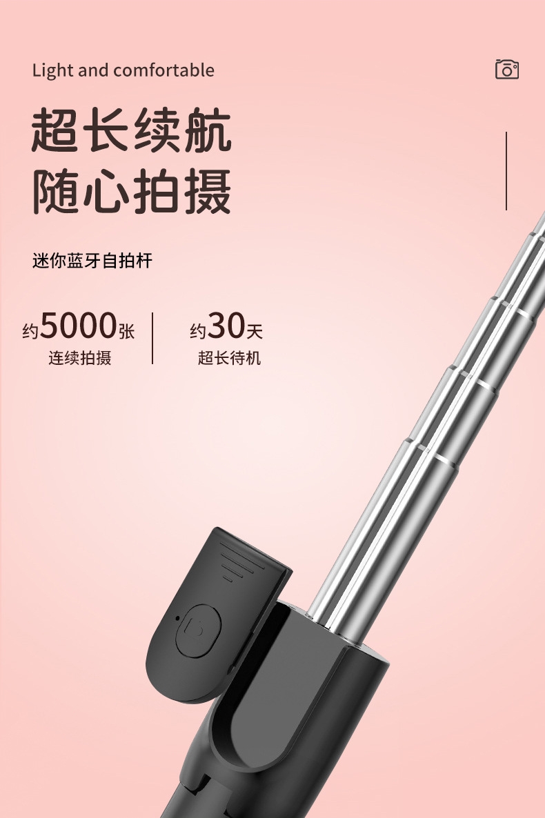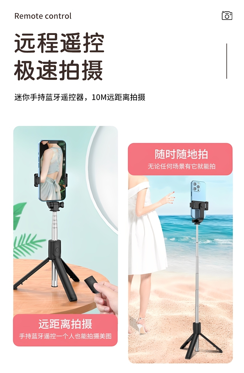 一体收纳 小巧便携;360°旋转 无线遥控;抓地三脚架 稳固不晃动