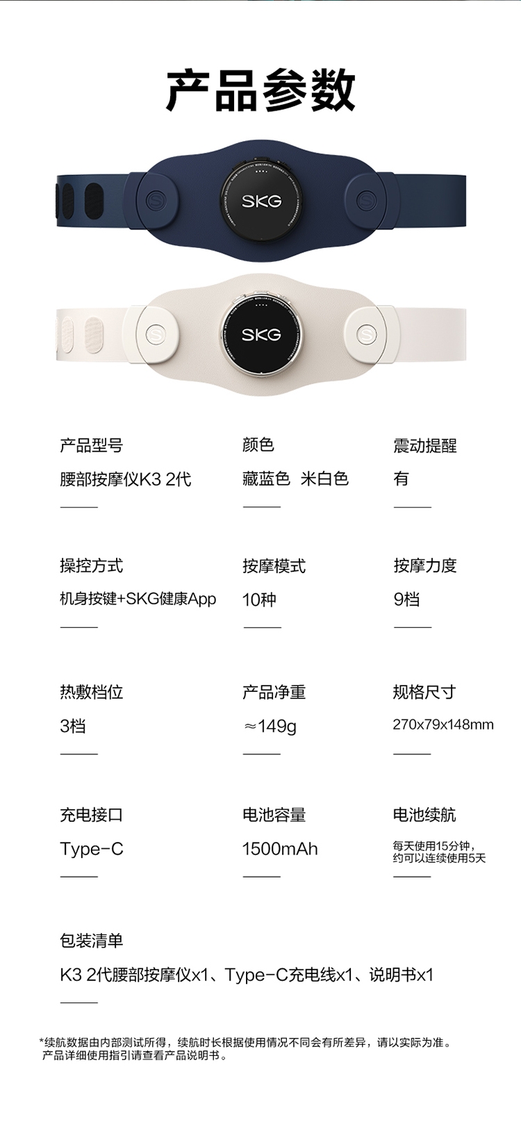SKG K3系列2代腰部按摩仪米白色K3-2代