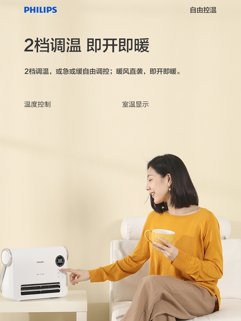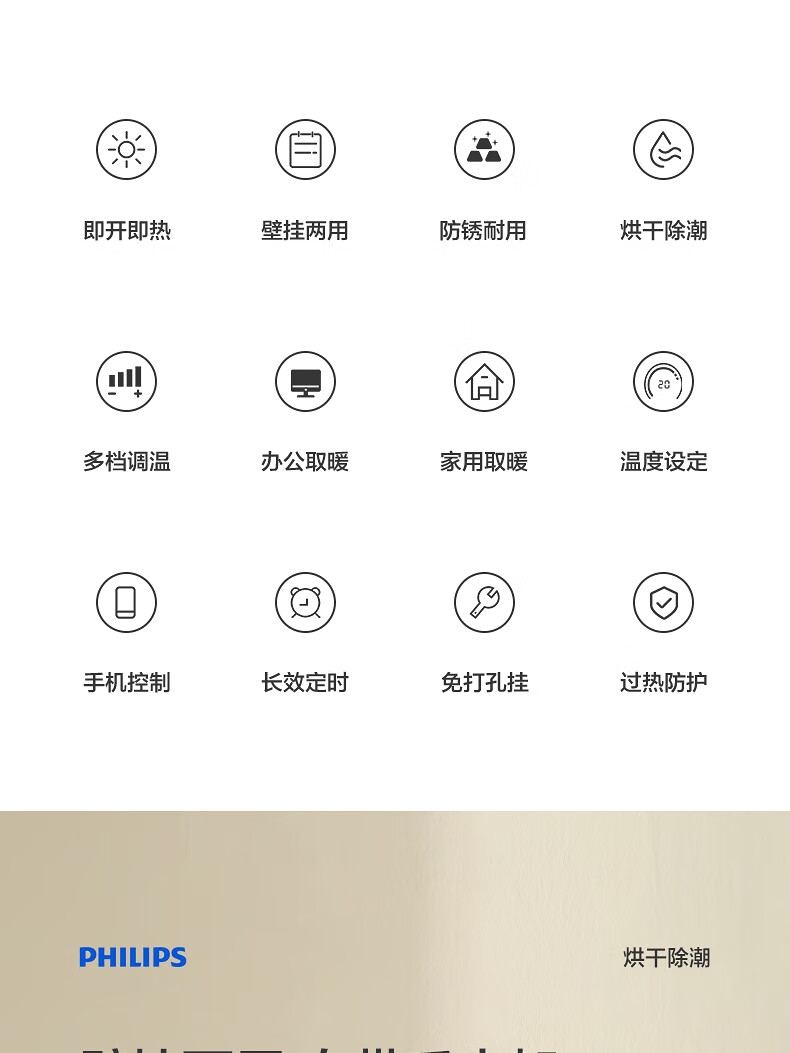 飞利浦 防水速热小型节能电暖器台壁两用AHR3124FX