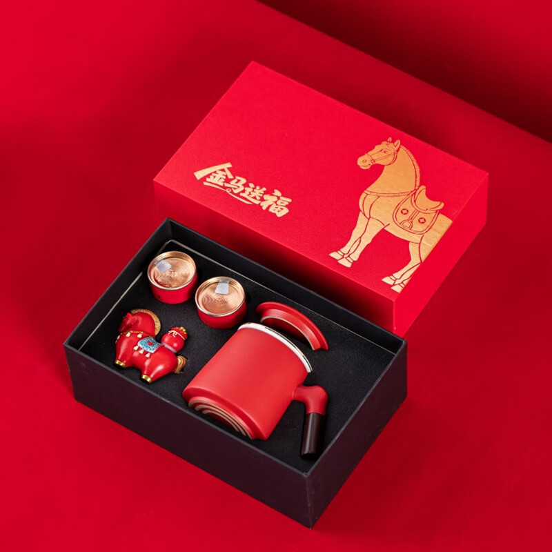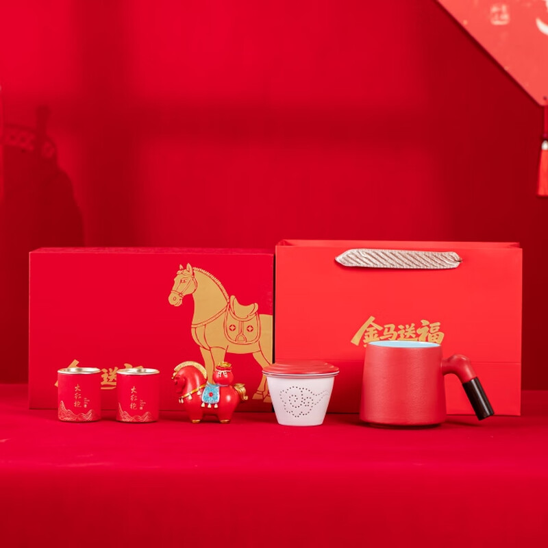 产品配置:办公杯x1 、马上福袋x1 、小茶罐x2 、礼盒礼袋x1