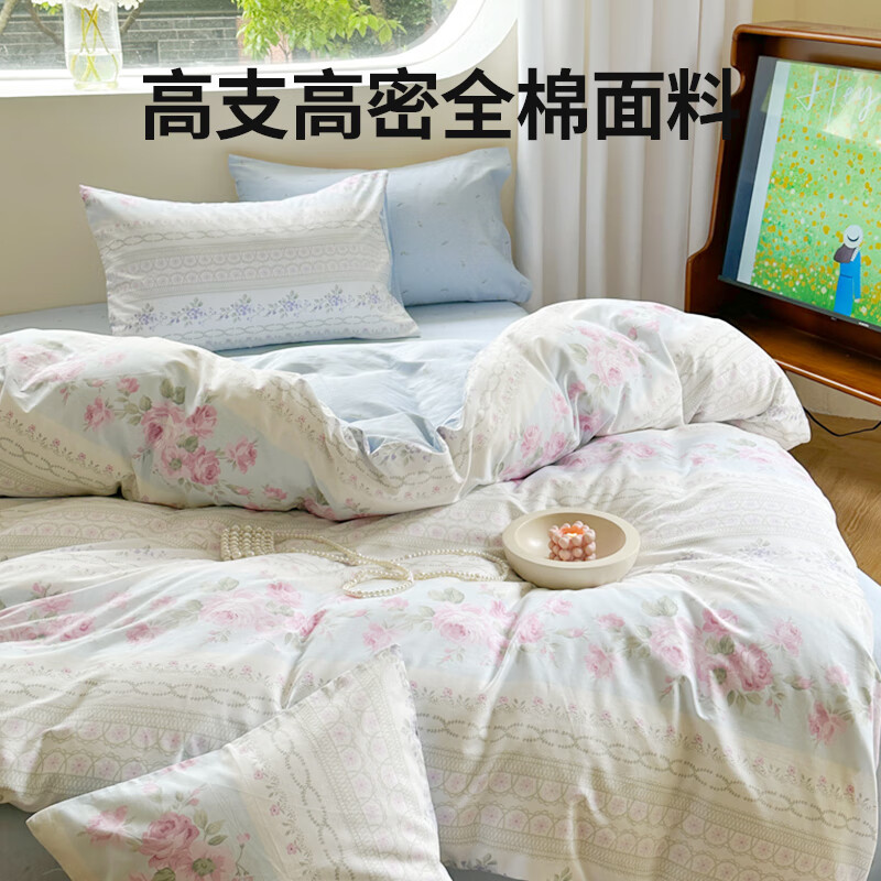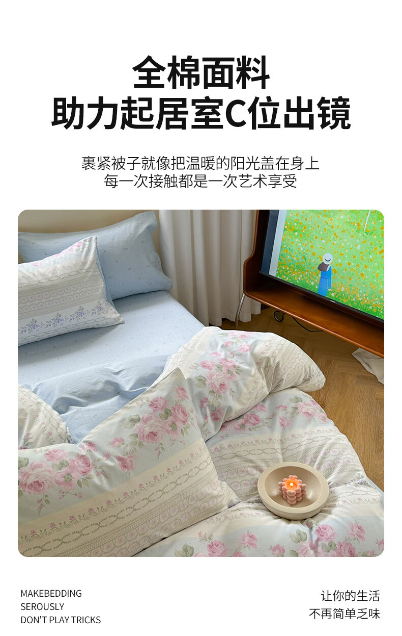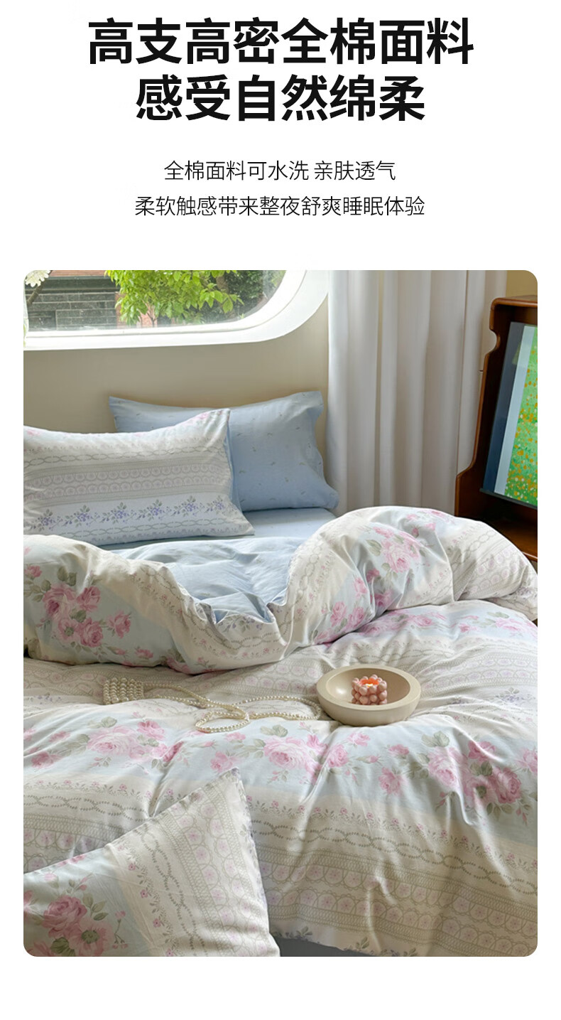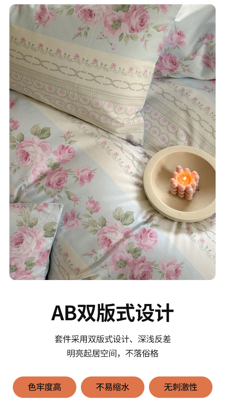 面料采用100%棉,喷气制造,高品质活性印花面料;绿色环保的活性印花技术,具有色泽亮丽,手感柔软细腻;实用后感觉温暖舒适,是您舒适家居生活的必备良品