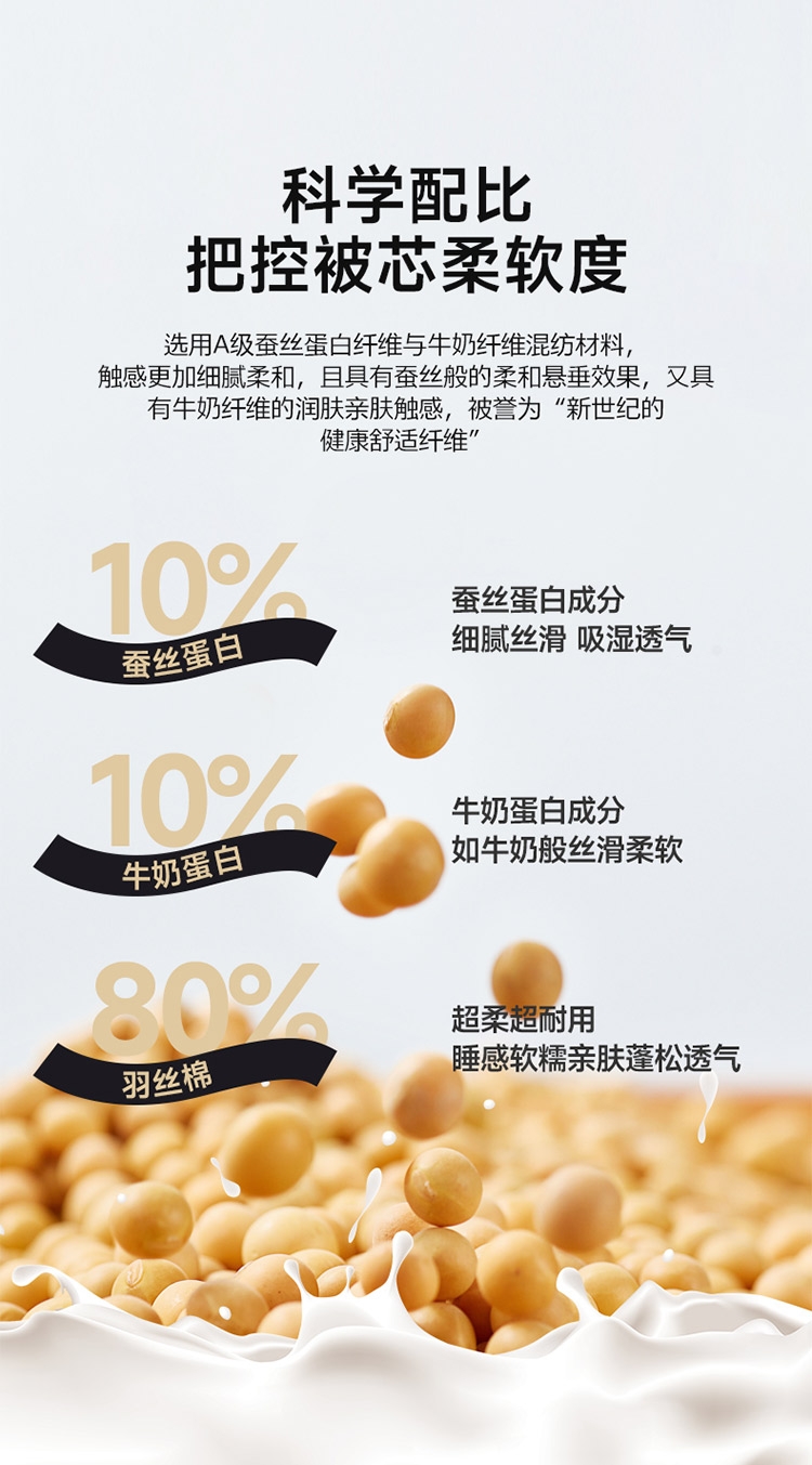 填 充:10%蚕丝蛋白 10%牛奶蛋白 80%羽丝棉