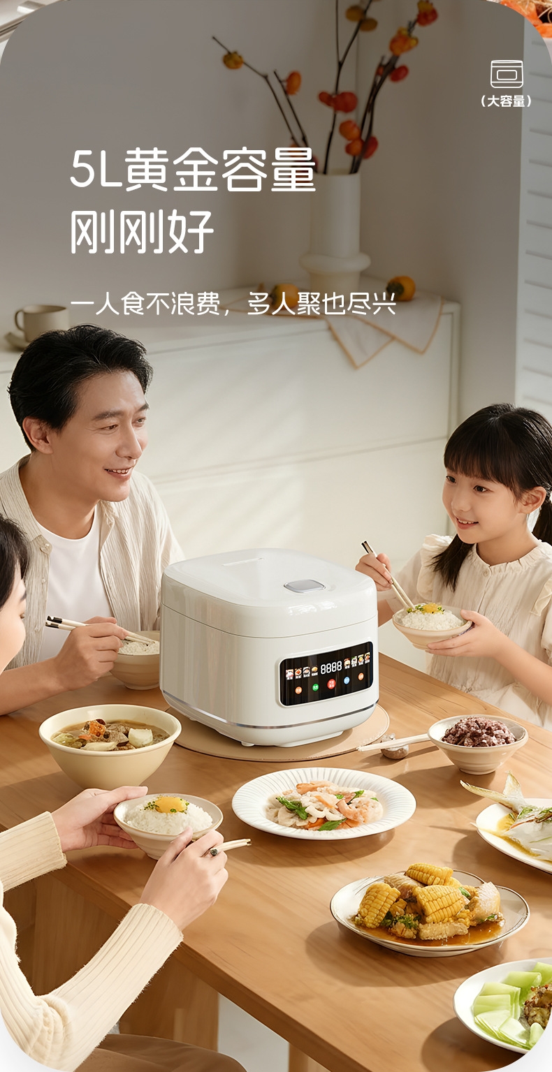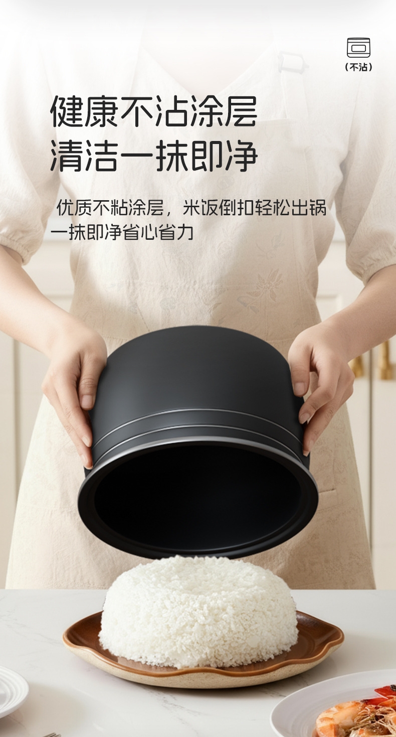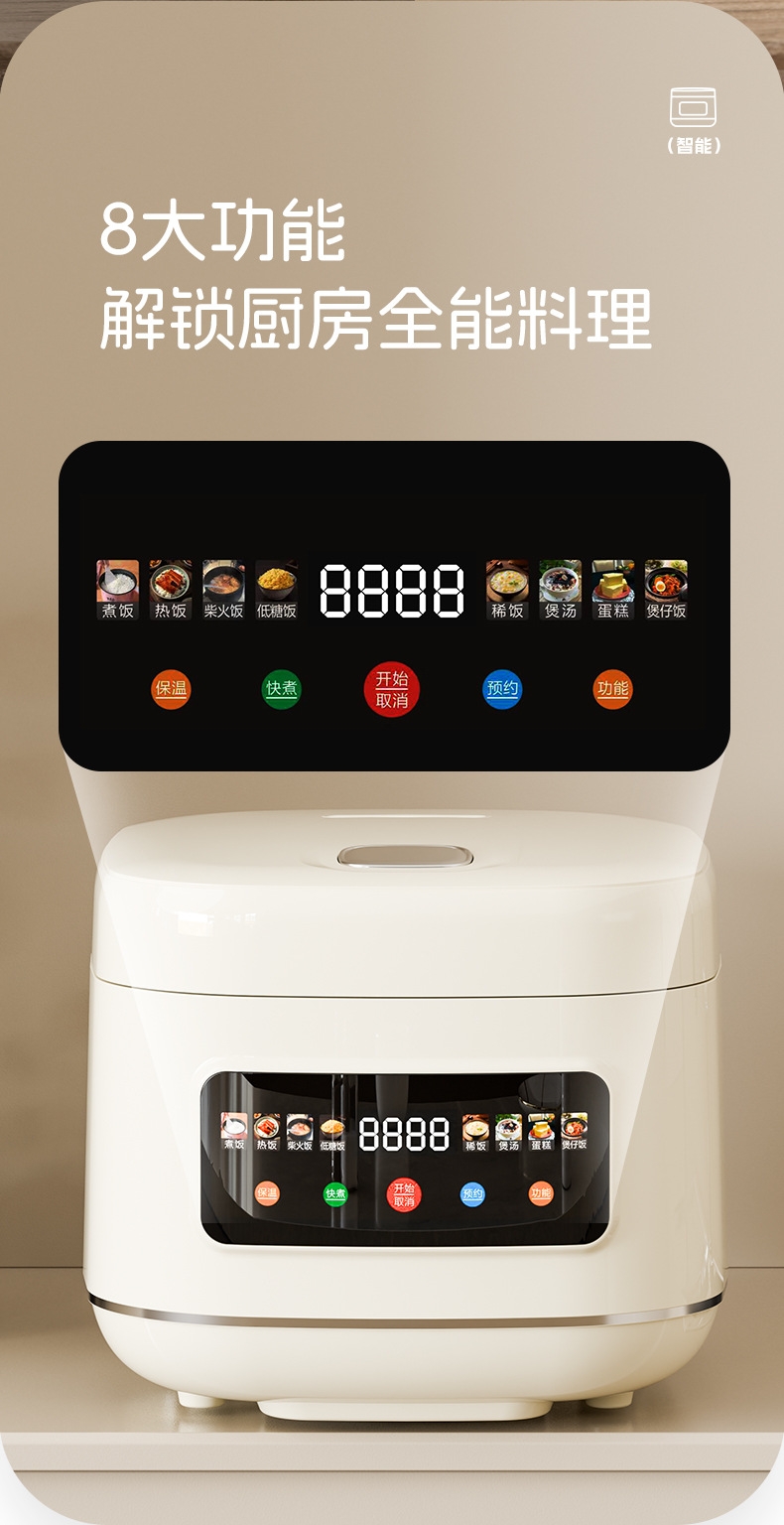 电饭煲多功能:快速饭,热饭,煮粥,煲汤