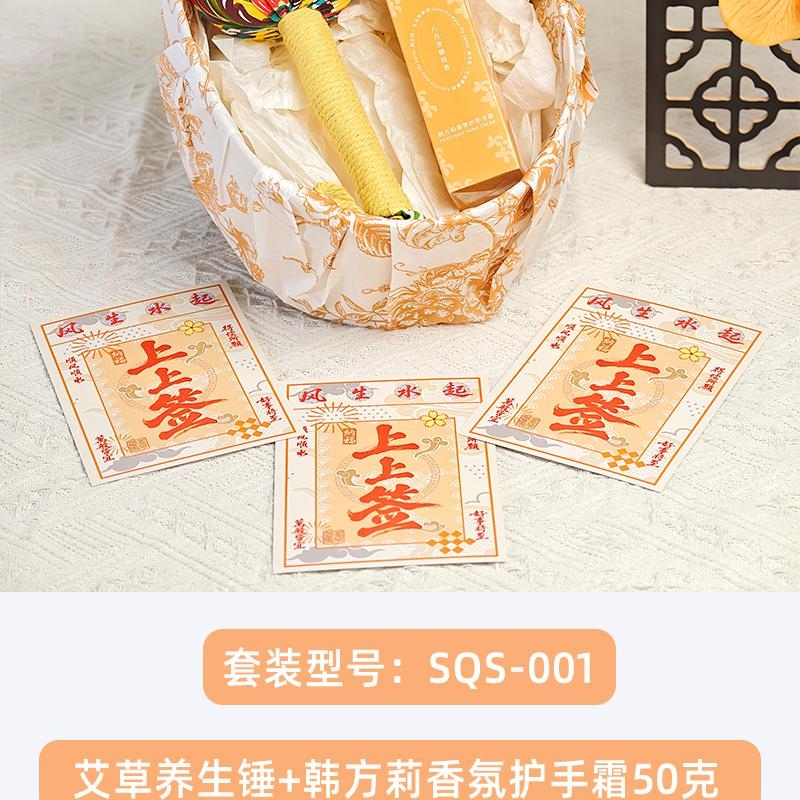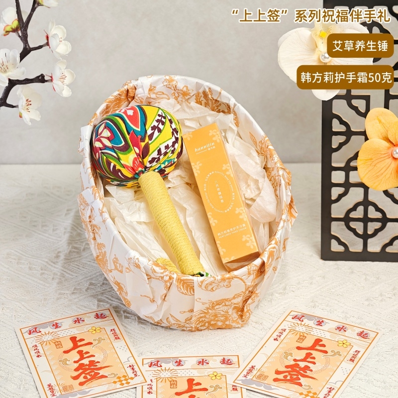 组合:艾草养生锤、韩方莉香氛护手霜50克、古风绑绳礼盒+上上签贺卡