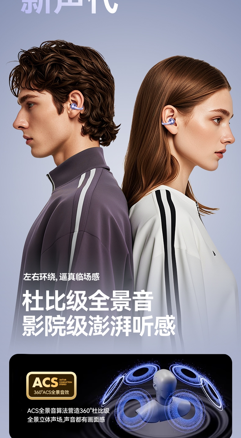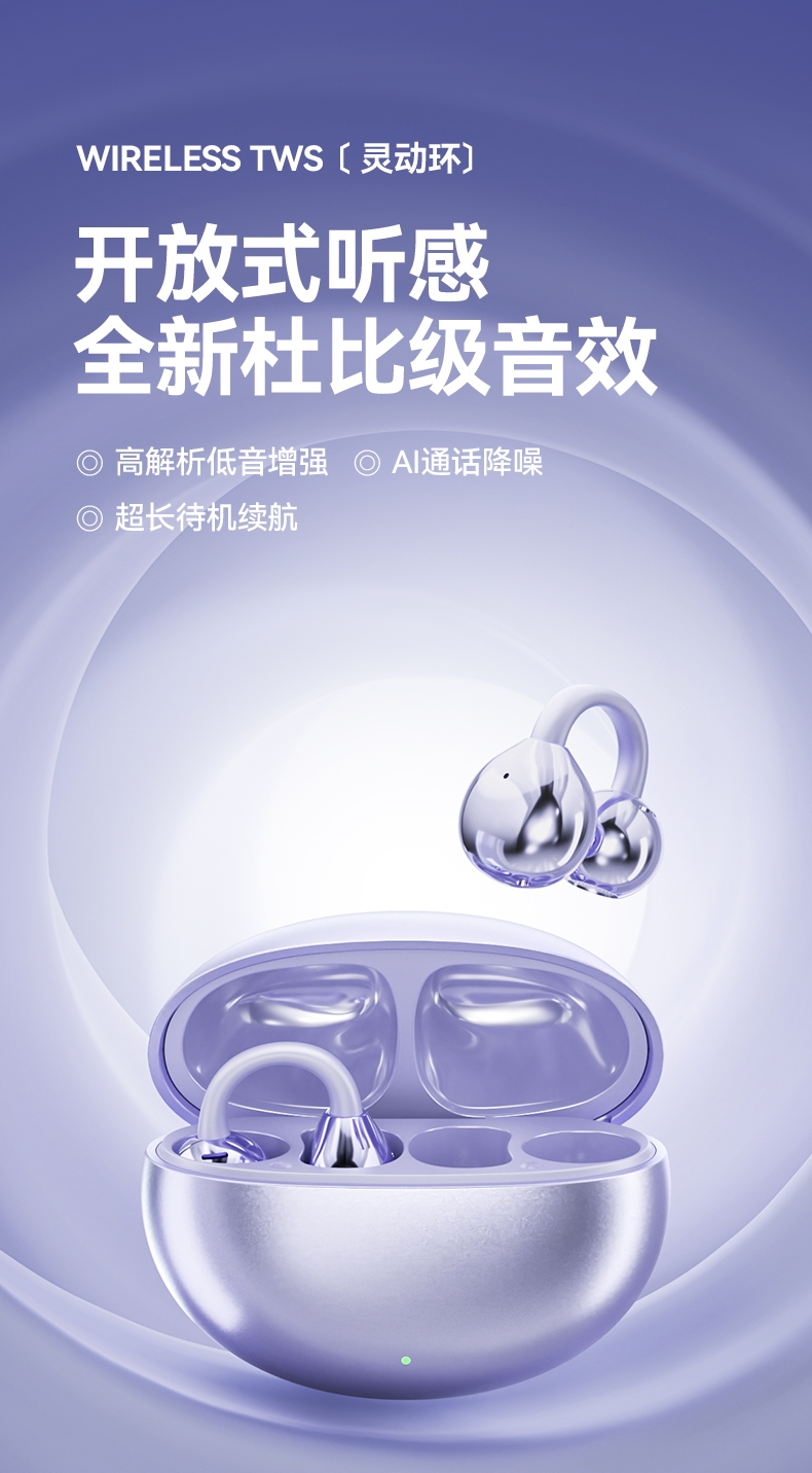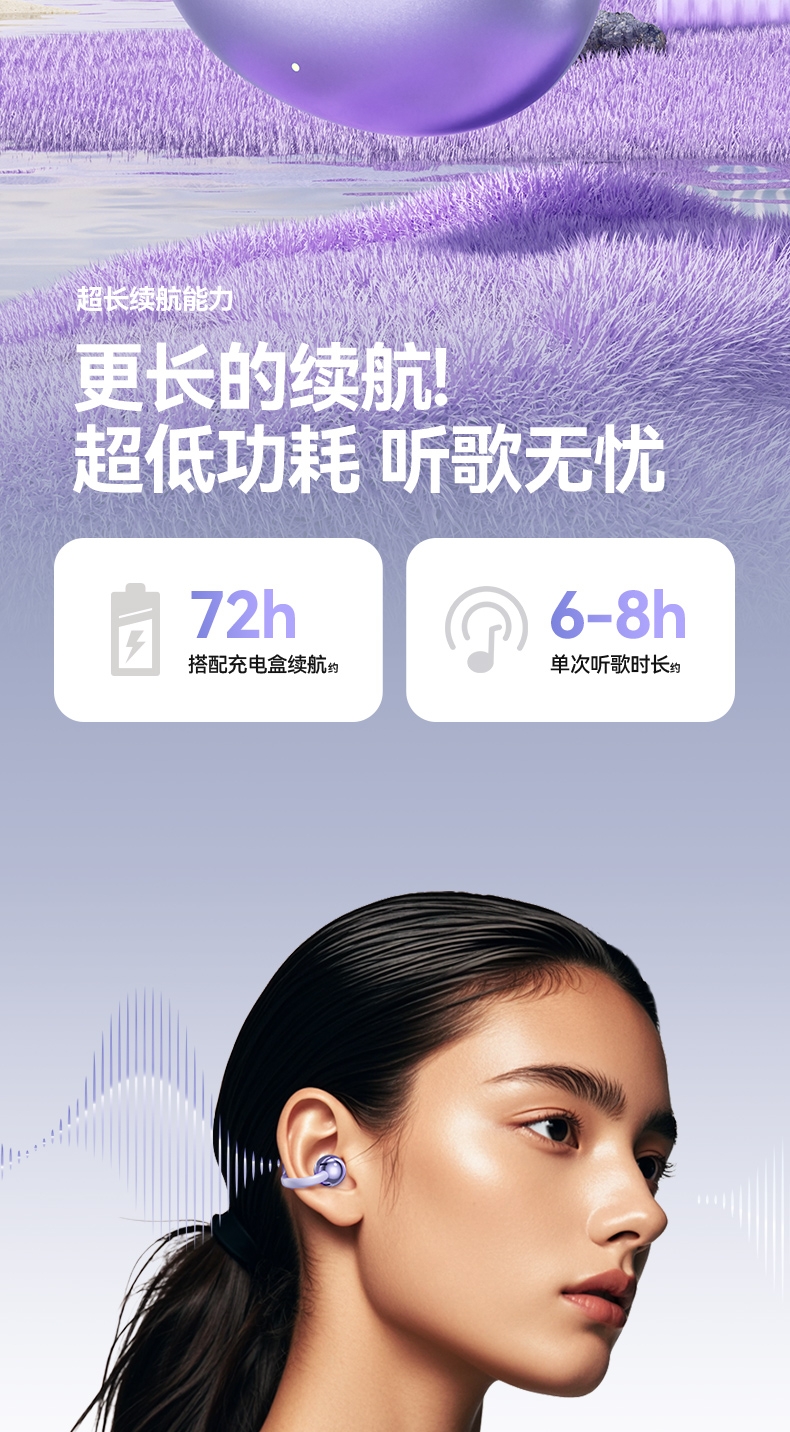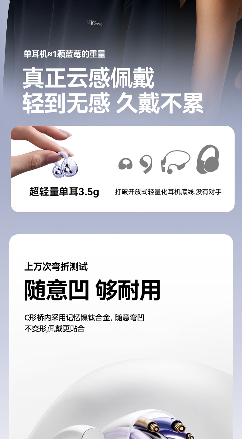 蓝牙5.4强大内芯 稳定不断连 ;智能指纹触控 触控随心;超轻耳夹 不入耳 真无感