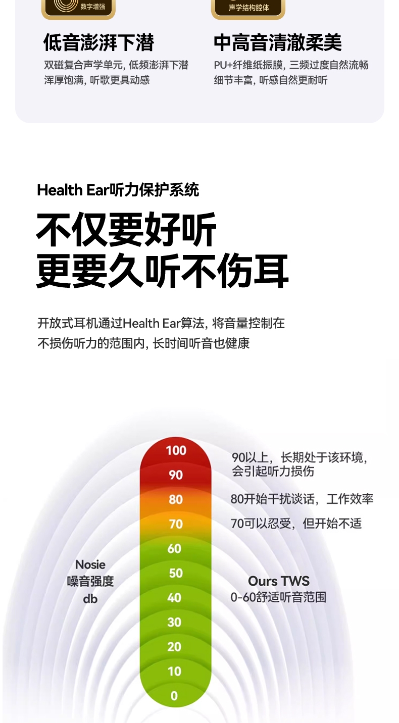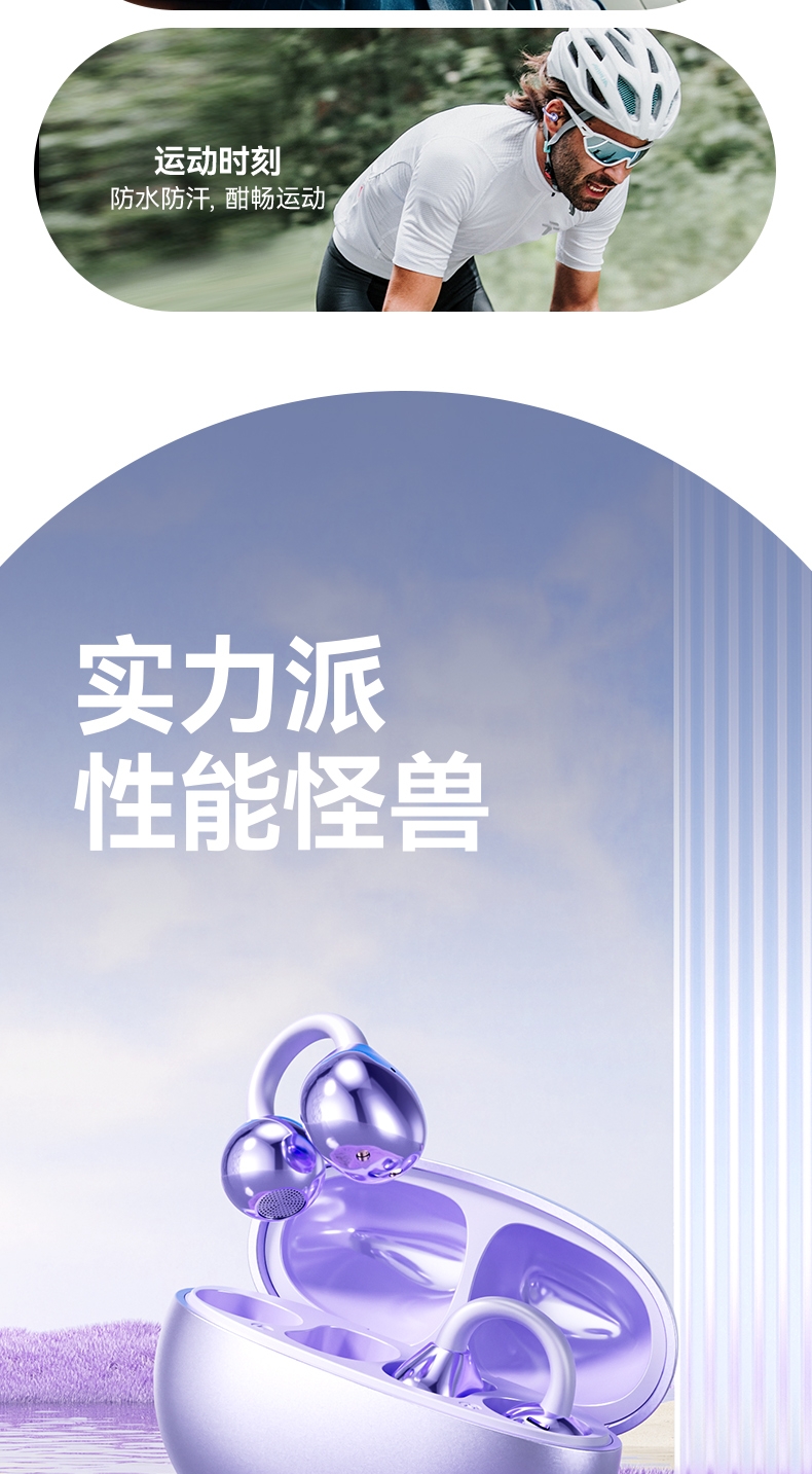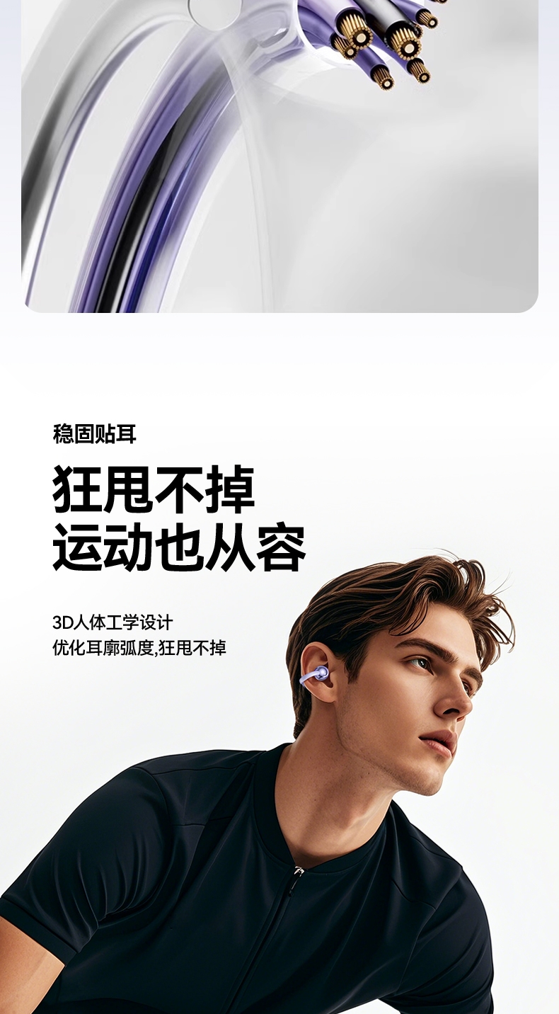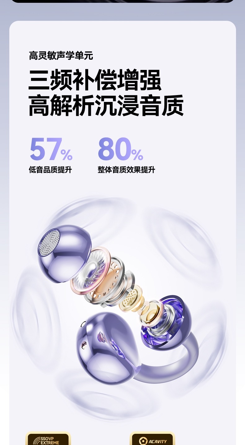 蓝牙5.4强大内芯 稳定不断连 ;智能指纹触控 触控随心;超轻耳夹 不入耳 真无感
