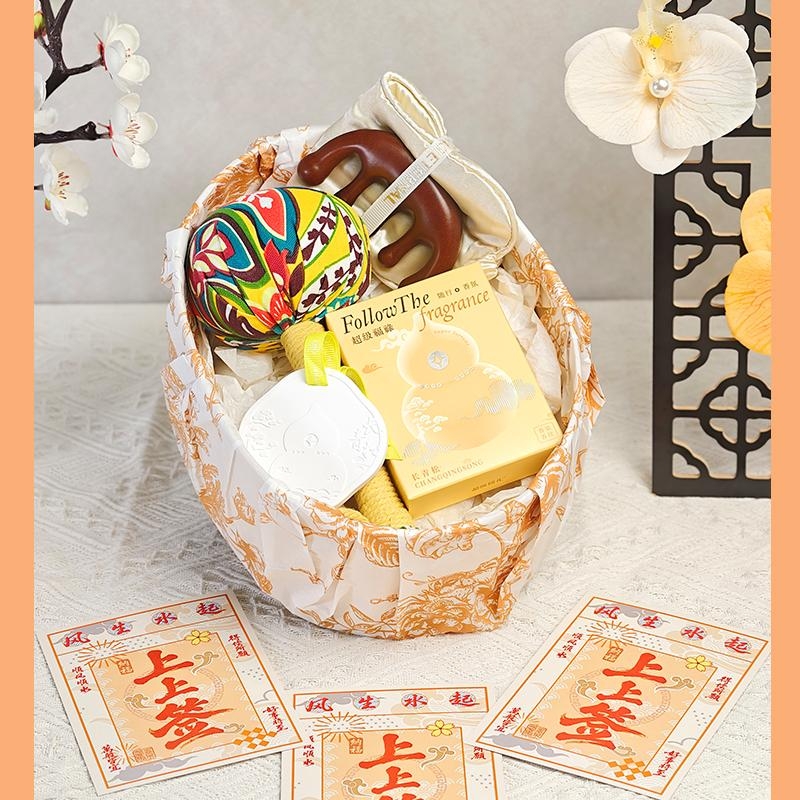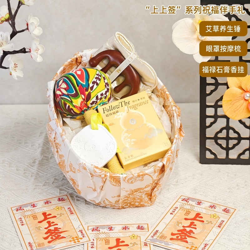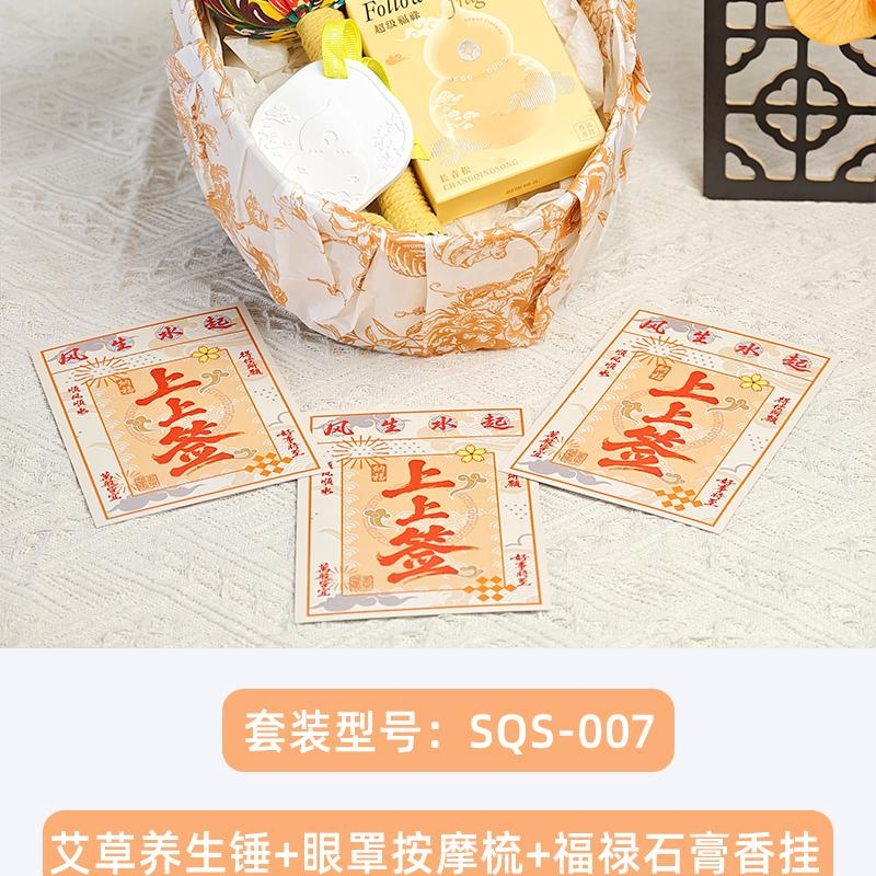 组合:艾草养生锤、眼罩按摩梳、福禄石膏香挂、古风绑绳礼盒+上上签贺卡