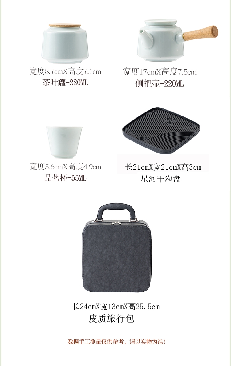 配置:1壶/4杯/1茶叶罐/1茶盘/旅行包