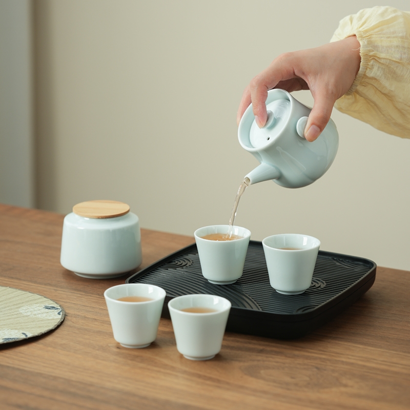 釉面清澈透明,光泽柔和,给人一种温润如玉的感觉;青瓷的胎体通常较薄,质地细腻制作工艺精湛,胎釉结合;影青茶具胎体较薄,容易破损,使用和存放时应避免碰撞