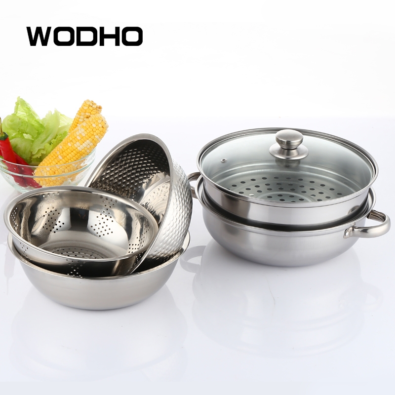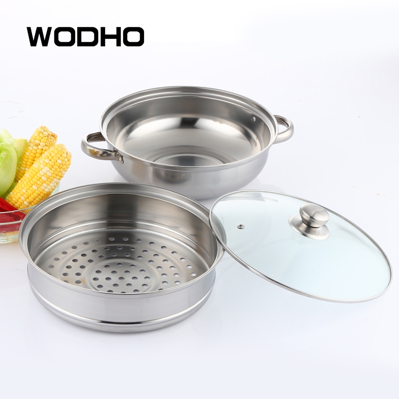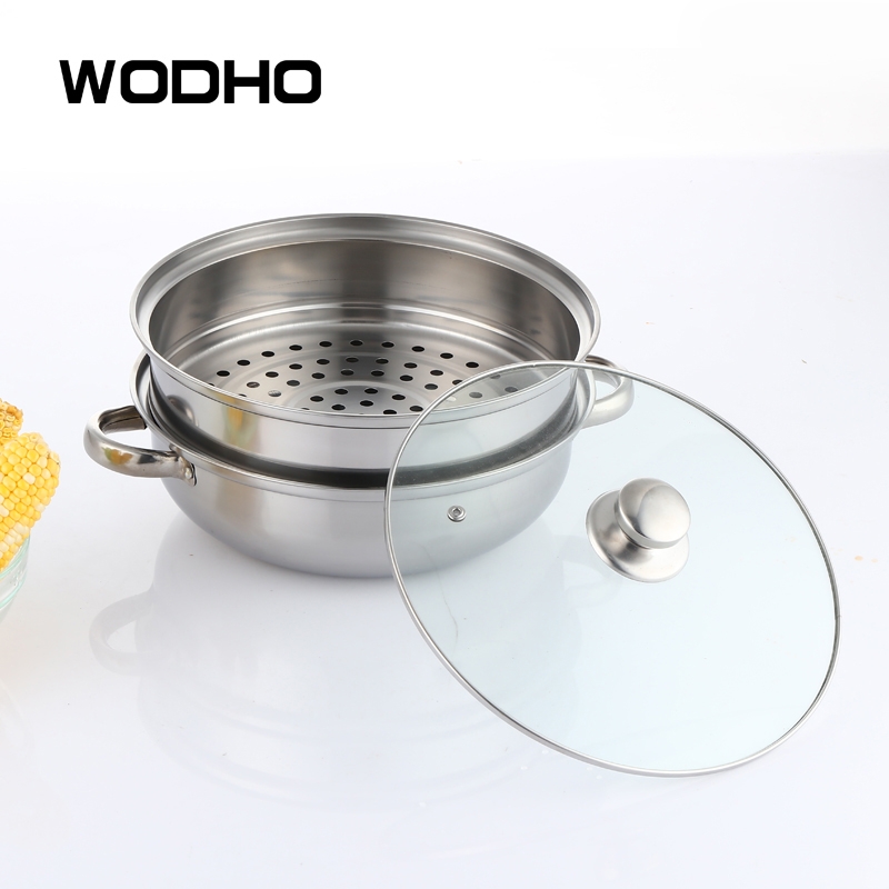 蒸锅采用优质不锈钢,导热快速均匀,不易烧焦。;可视钢化玻璃盖,对锅内烹饪食物一目了然,同时确保热;一锅多用,蒸煮炖汤,一锅搞定。