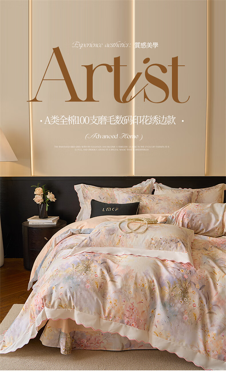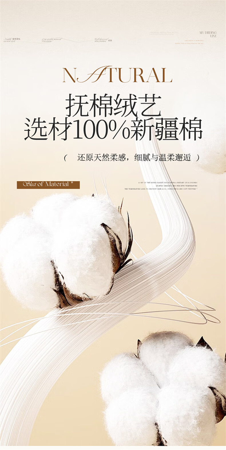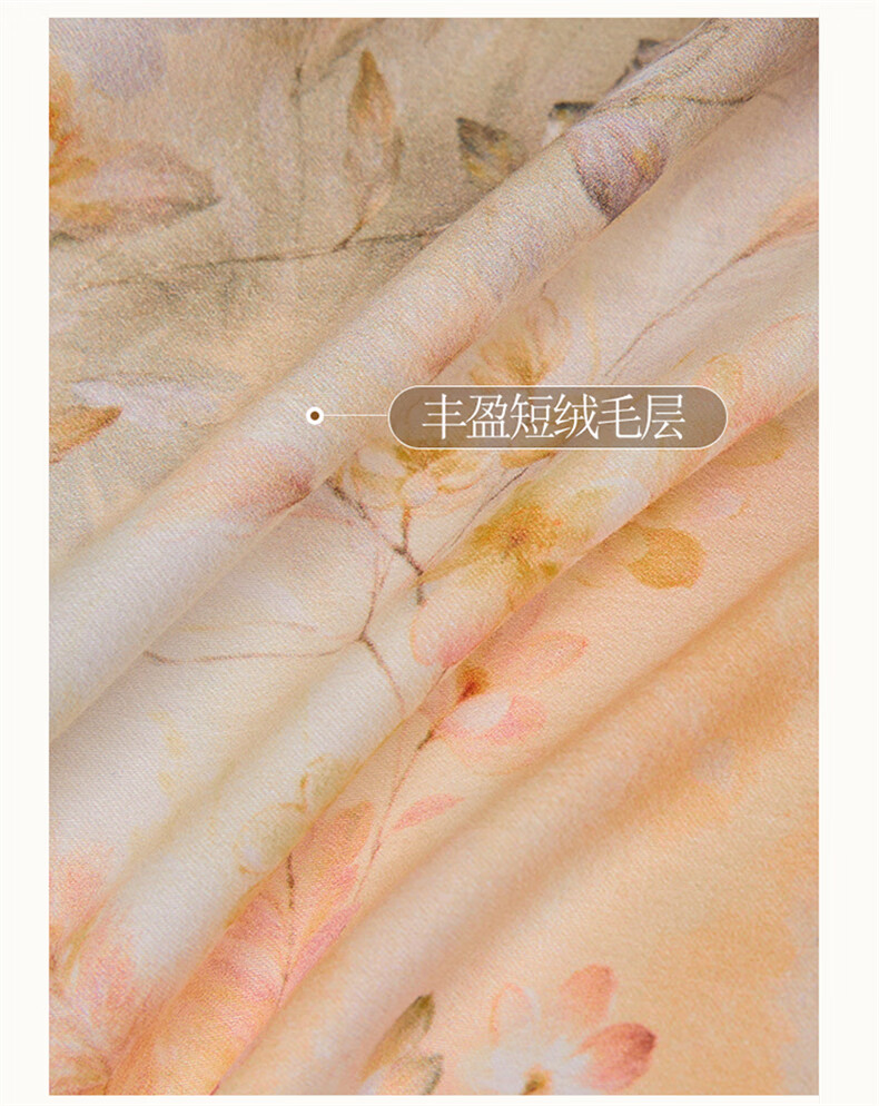 抚棉绒艺选材100%新疆棉还原天然柔感,细腻与温柔;火山小磨毛,专研速保暖技术;看得见的真正温暖 燃爆寒冬。数码印花工艺,色彩鲜活