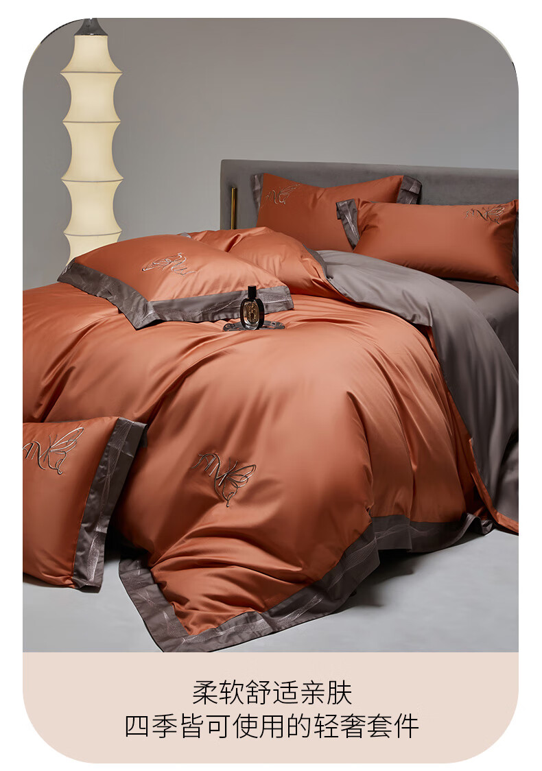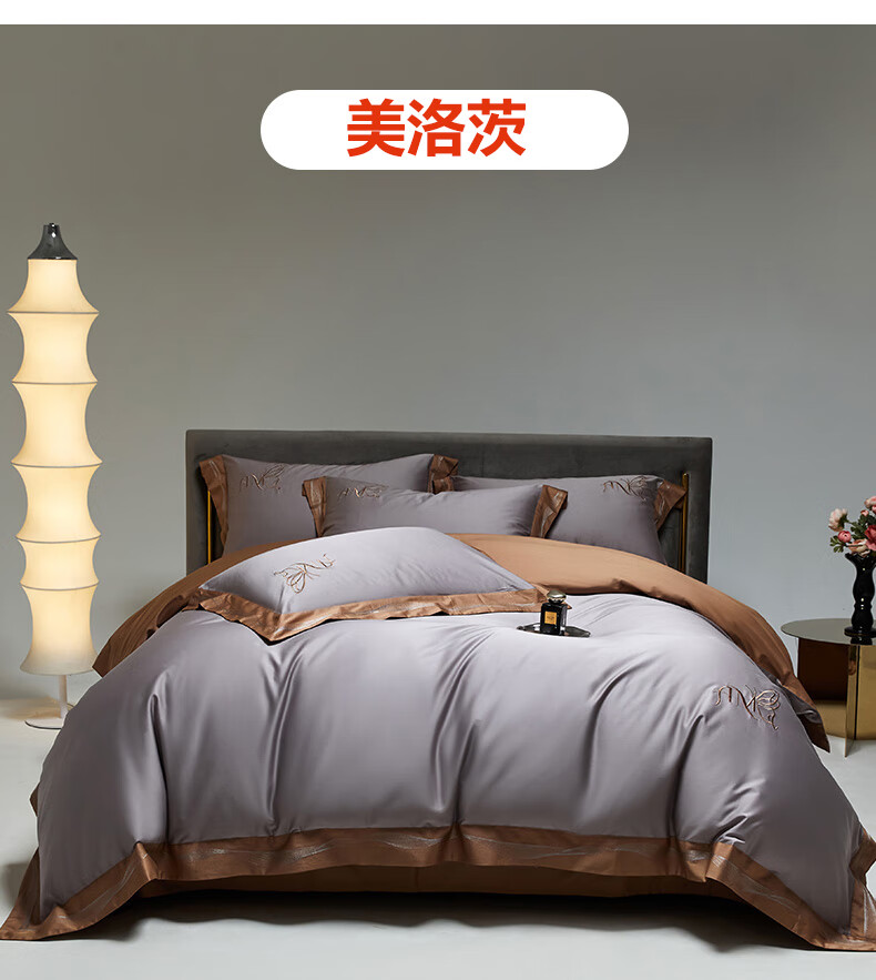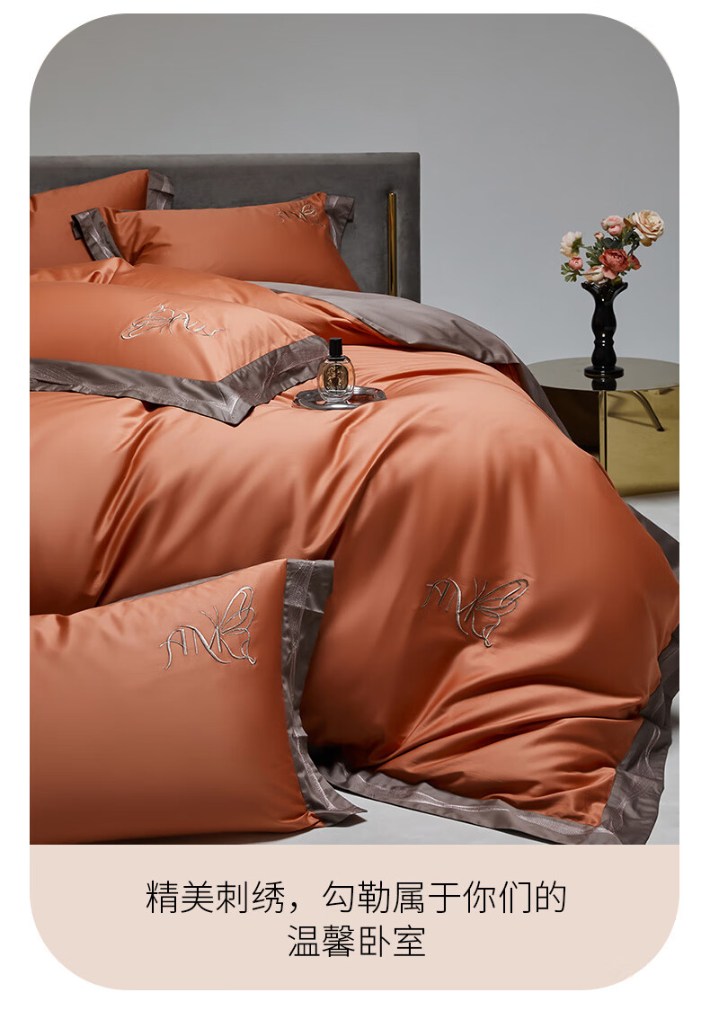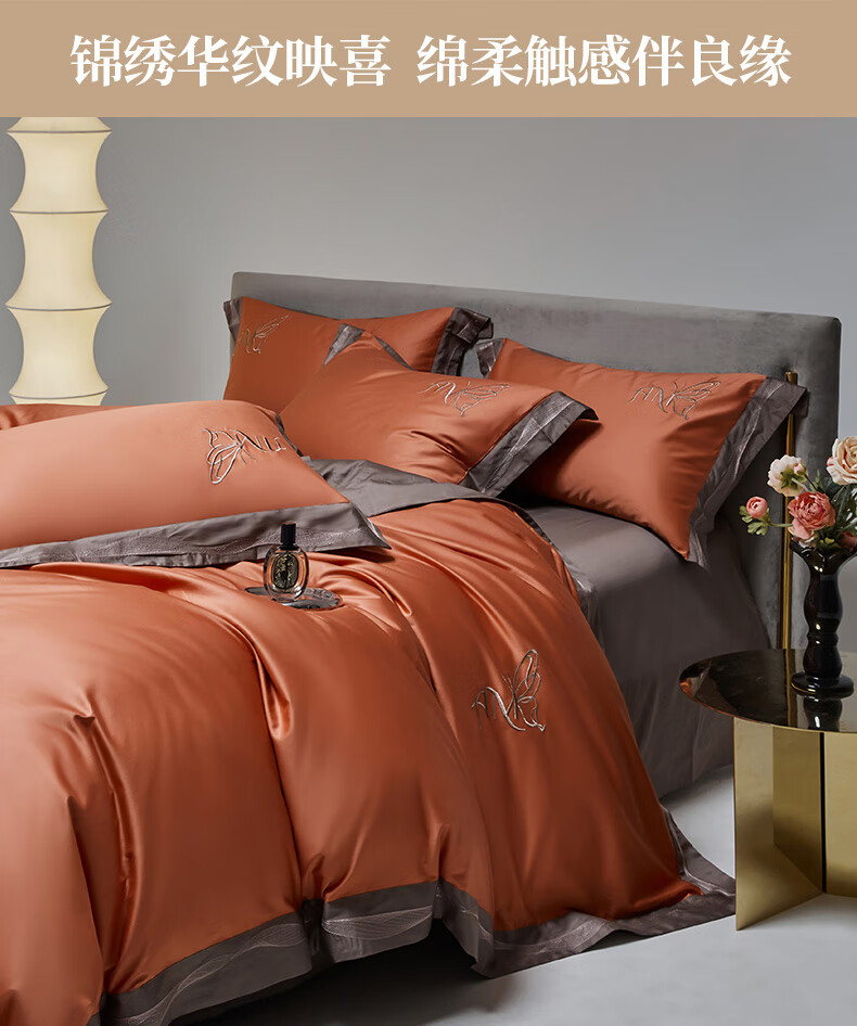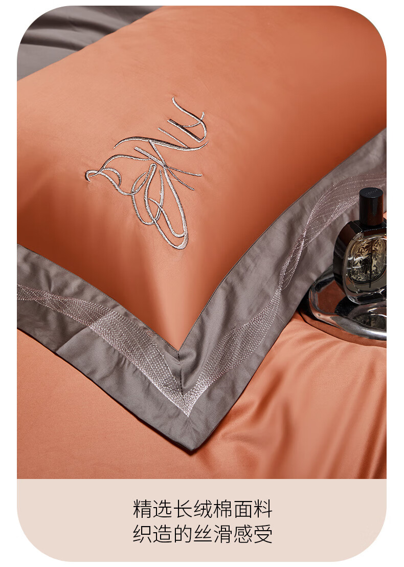 静谧精致 温柔以待,匠心质造雅致触感,落于其间,;100支精工刺绣,家纺艺术的美学盛宴;是美感与舒适感内外兼修,彰显使用者的优雅品味