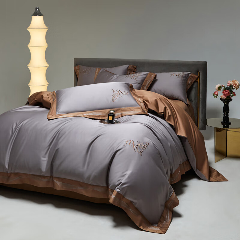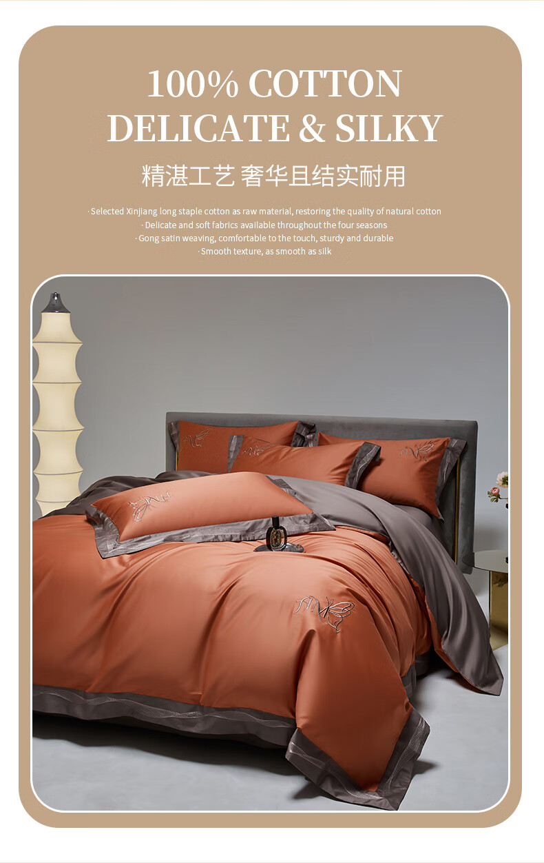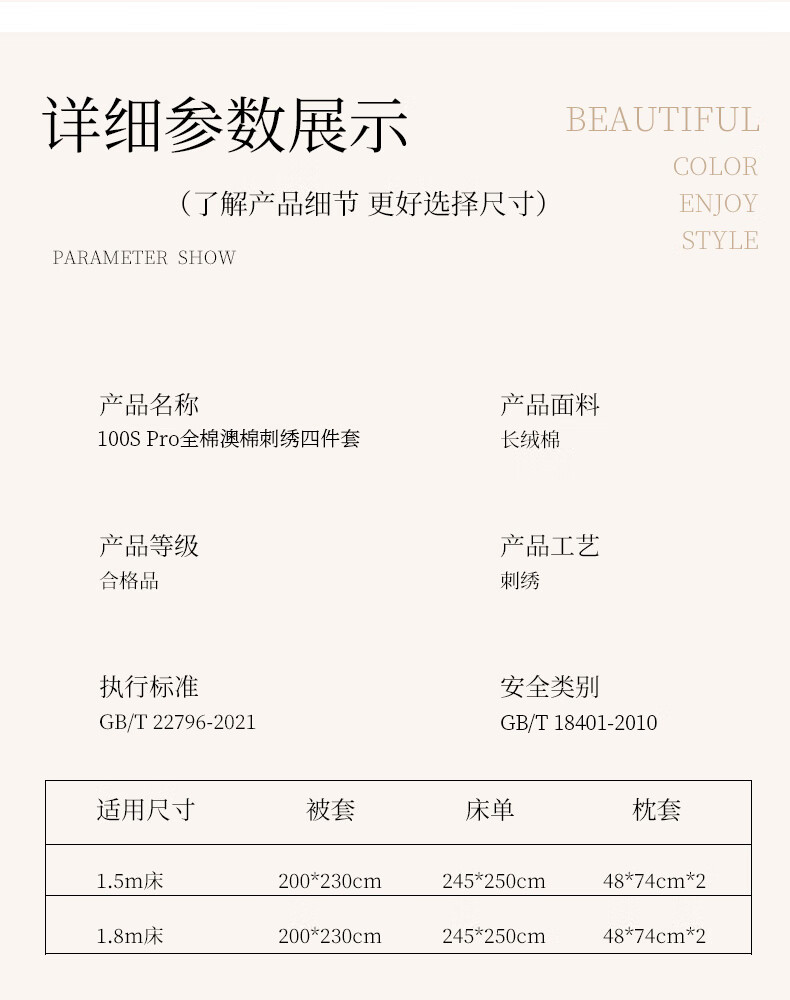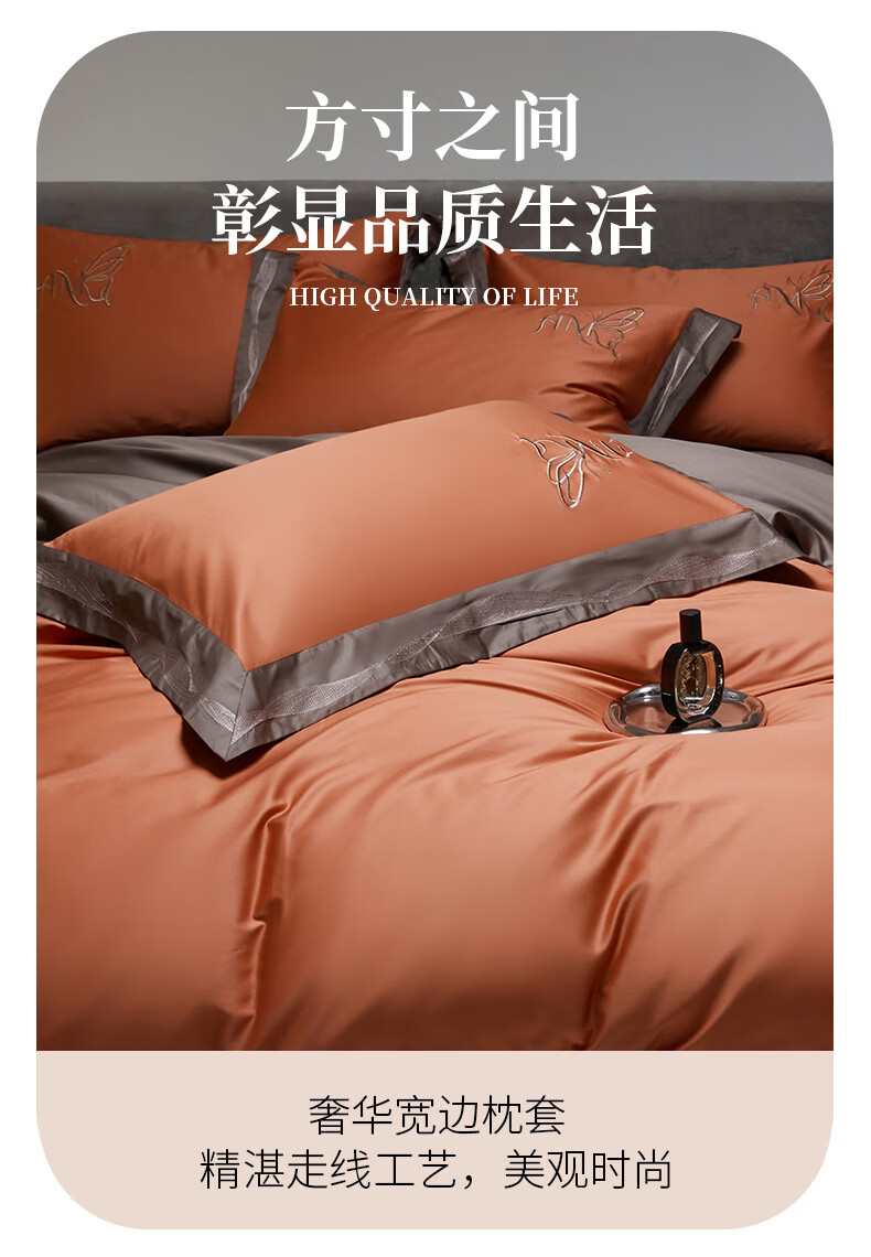 静谧精致 温柔以待,匠心质造雅致触感,落于其间,;100支精工刺绣,家纺艺术的美学盛宴;是美感与舒适感内外兼修,彰显使用者的优雅品味