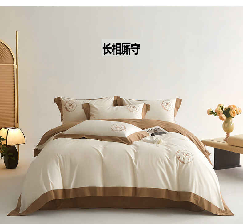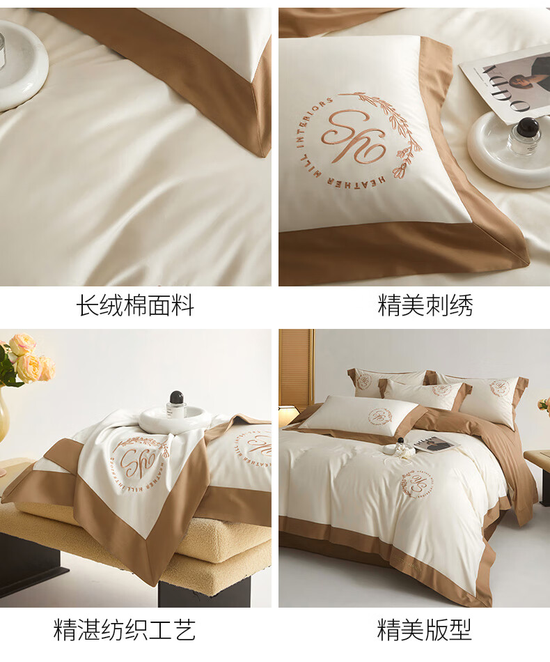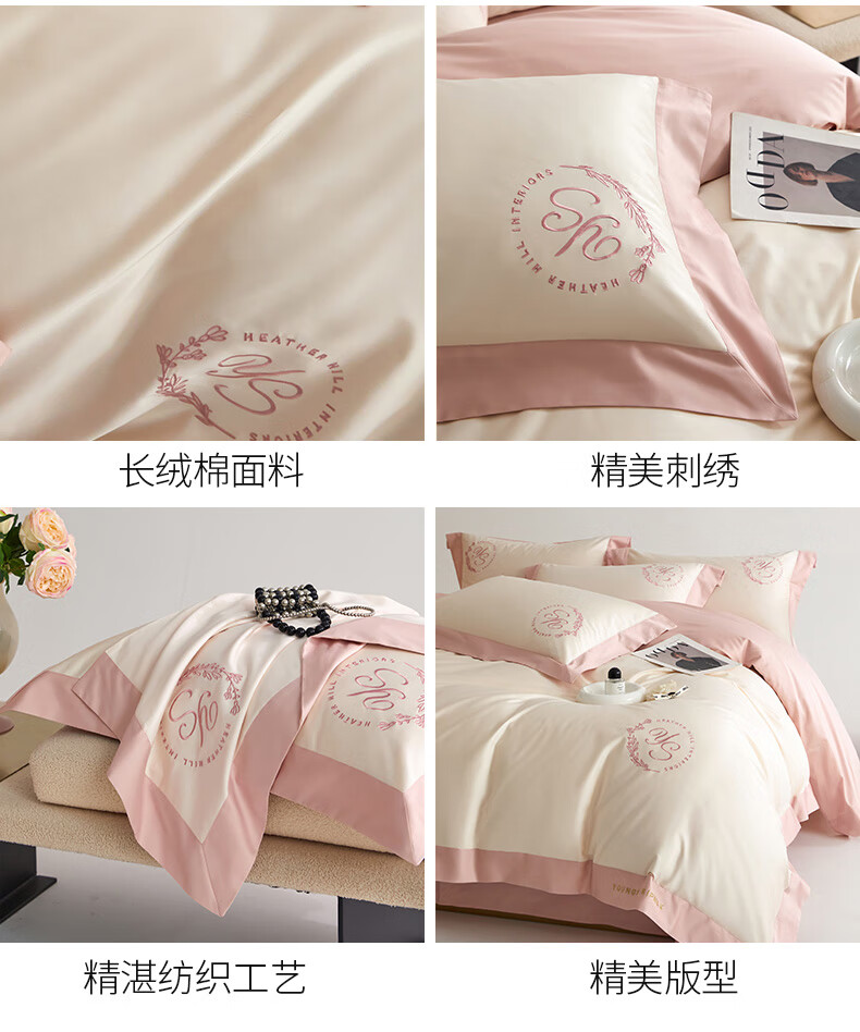 静谧精致 温柔以待,匠心质造雅致触感,落于其间,;100支精工刺绣,家纺艺术的美学盛宴,是美感与舒适;彰显使用者的优雅品味,甄选好棉精湛刺绣,