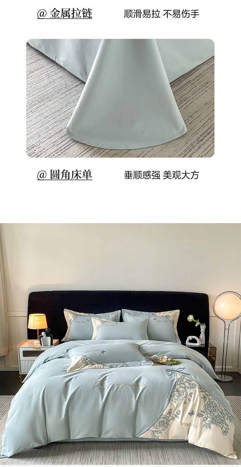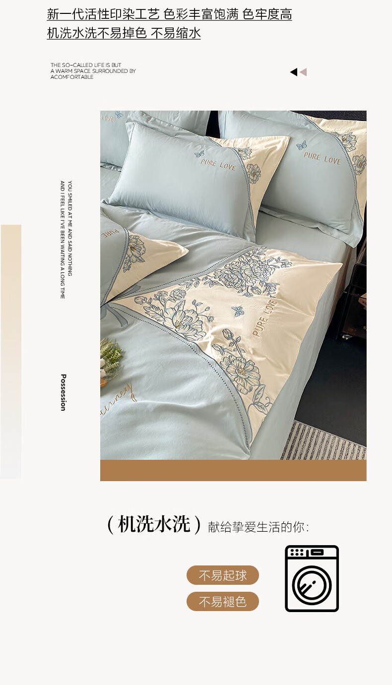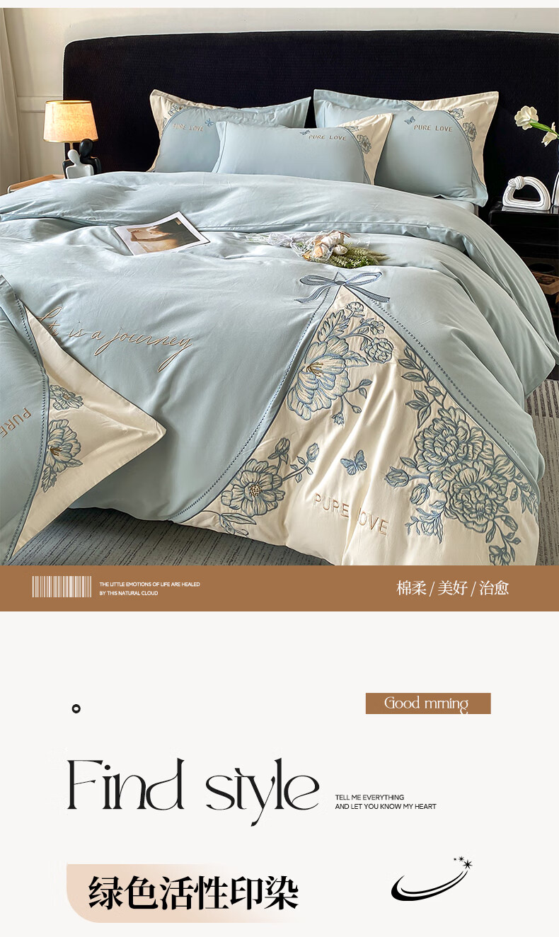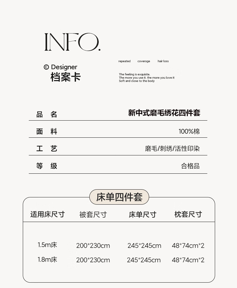 新中式绣花工艺款四件套,典雅大方精选长绒棉磨毛面料;高密长绒棉面料 经过磨毛后 更加柔软;更加细腻更加温暖! 被窝里小太阳 不易掉毛的安全感