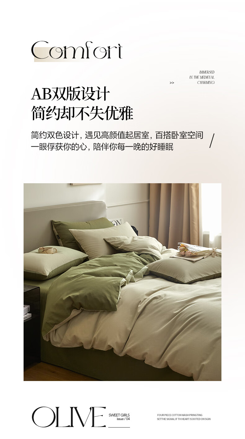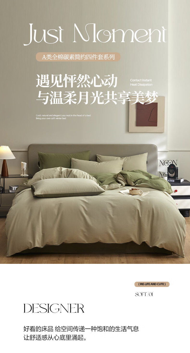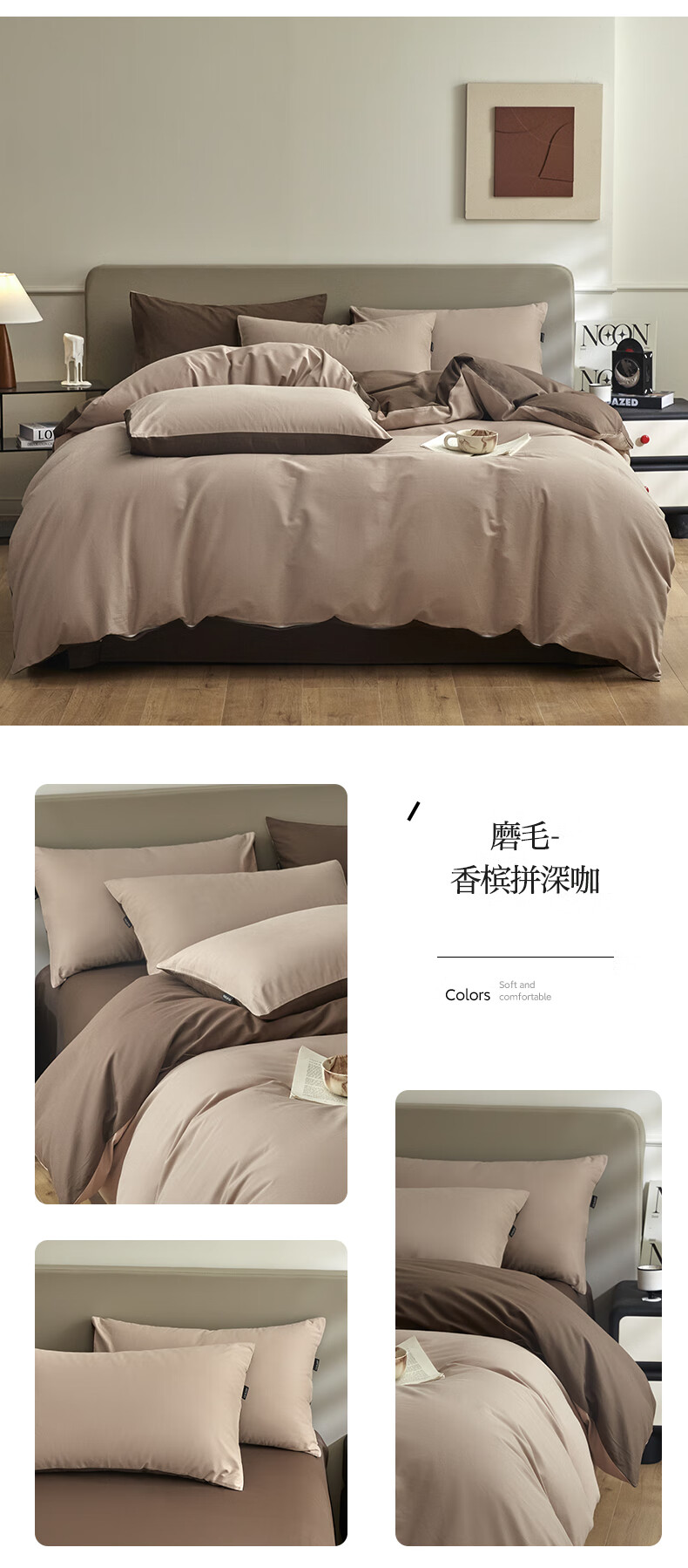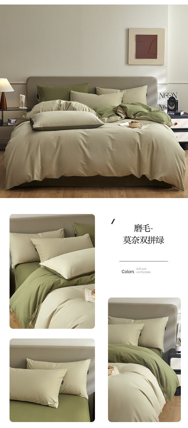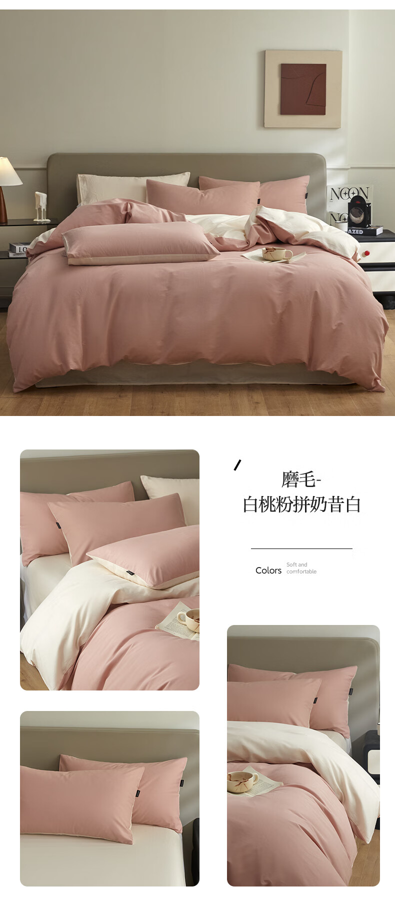 百丽安娜 全棉纯色磨毛四件套三色可选