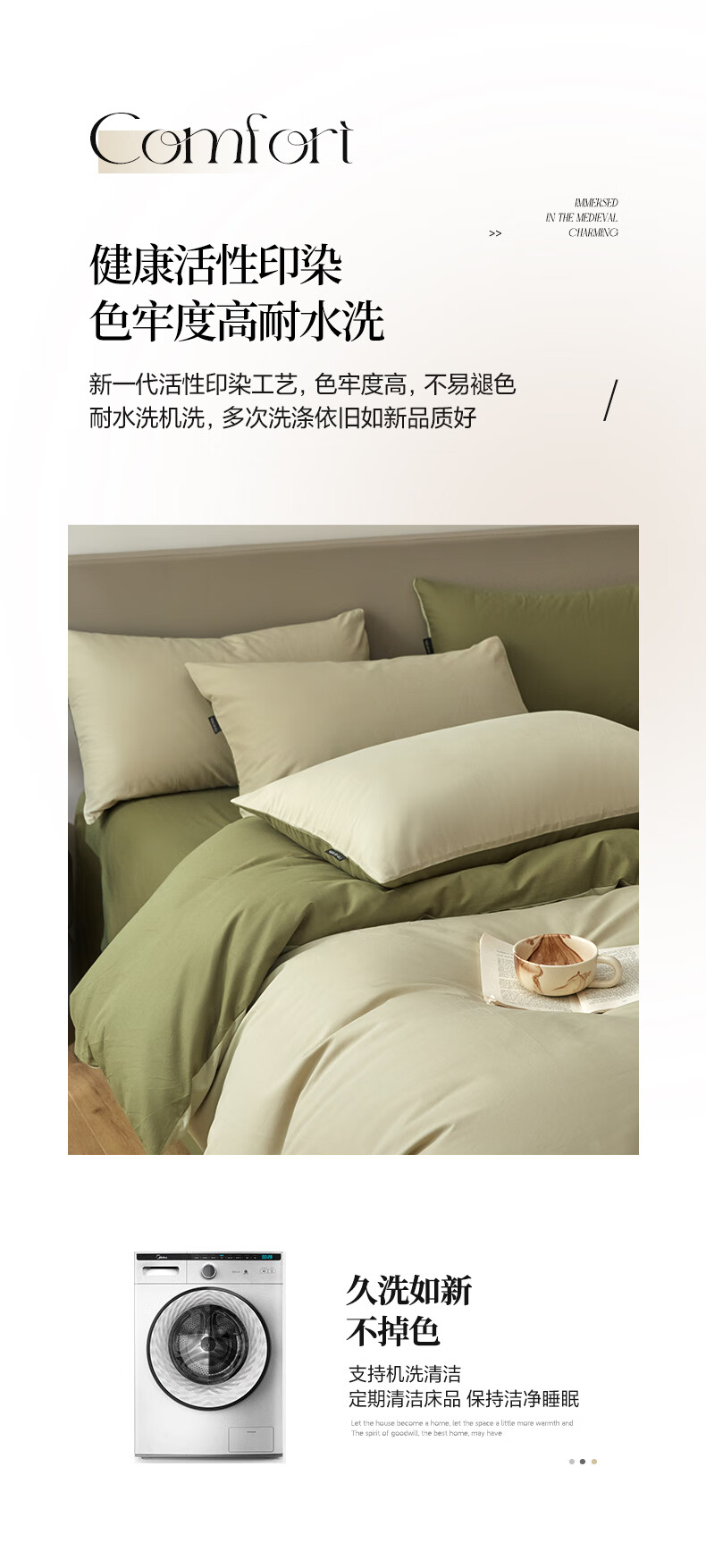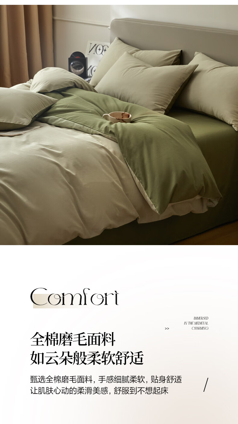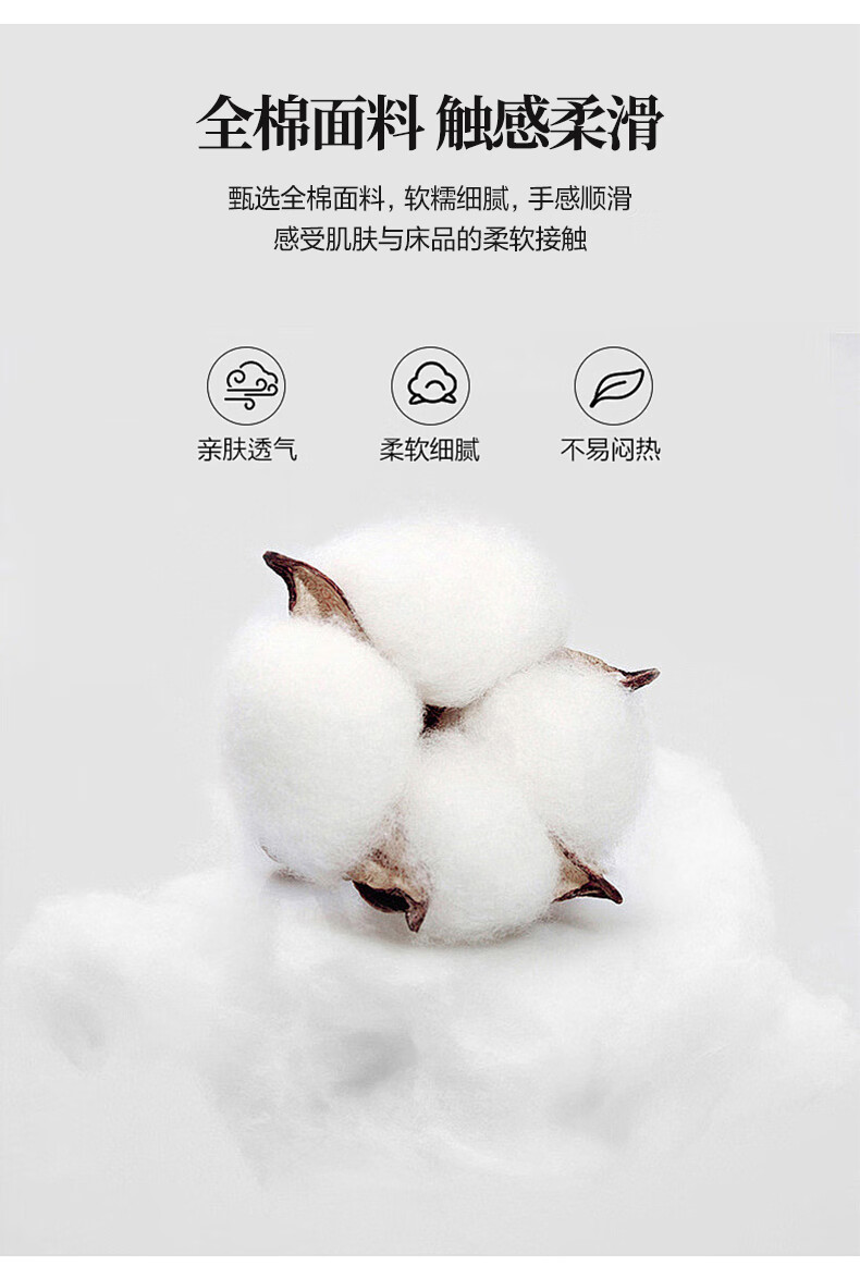 甄选高密度全棉磨毛面料织造,手感细腻贴肤;经过磨毛工艺,绵软触感,透气亲肤;远离闷热被窝,呵护整夜睡眠