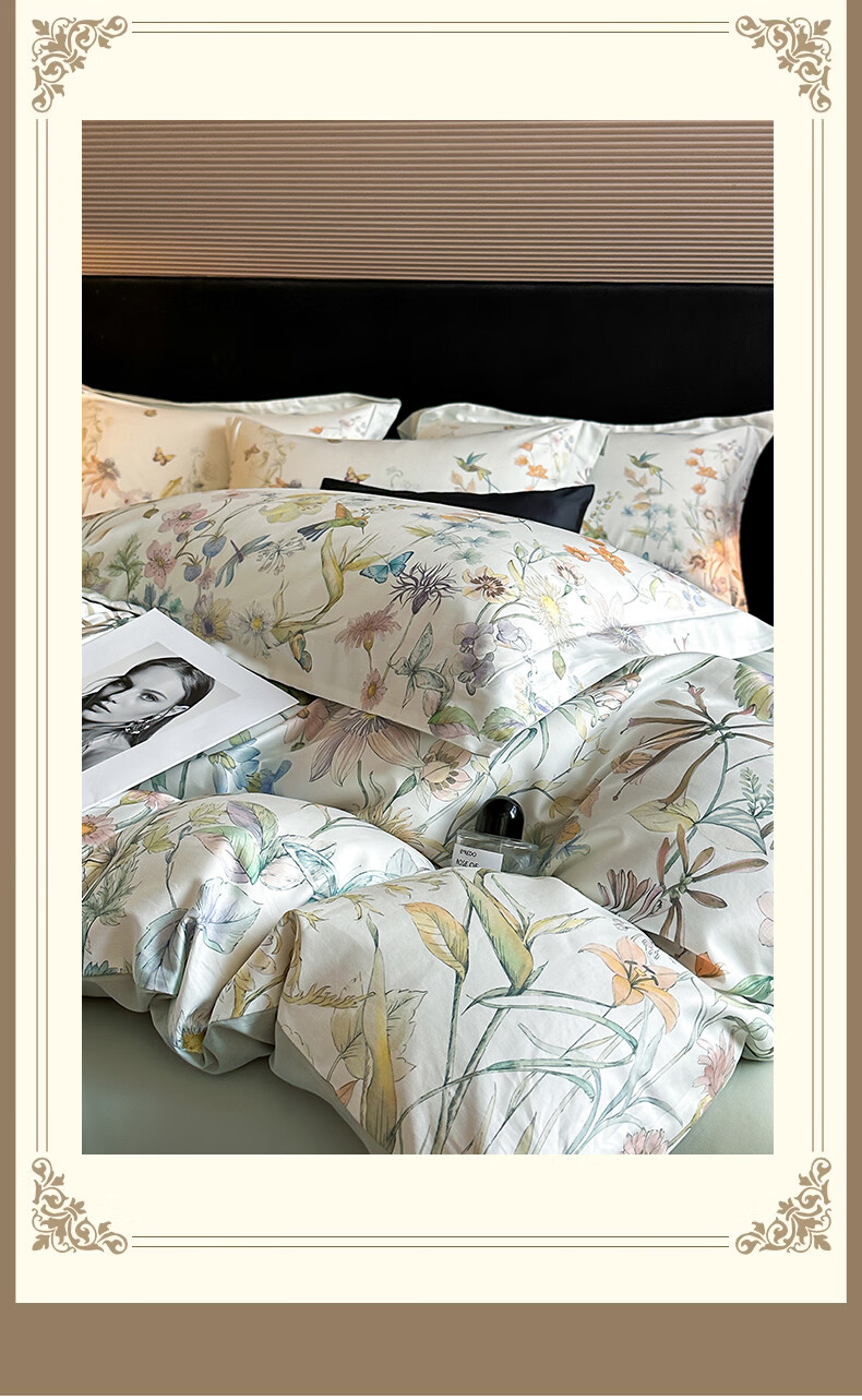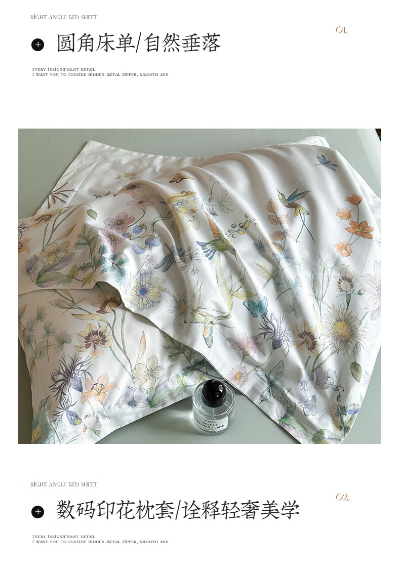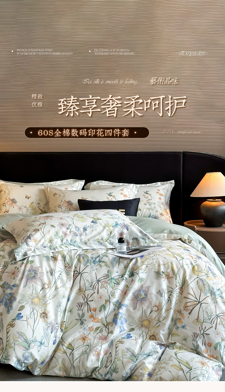 甄选60支全棉面料,手感细腻亲肤,透气贴肤;呵护舒适睡眠,活性印花工艺,色彩靓丽,色牢度高;不易起球透气贴肤,细腻柔软