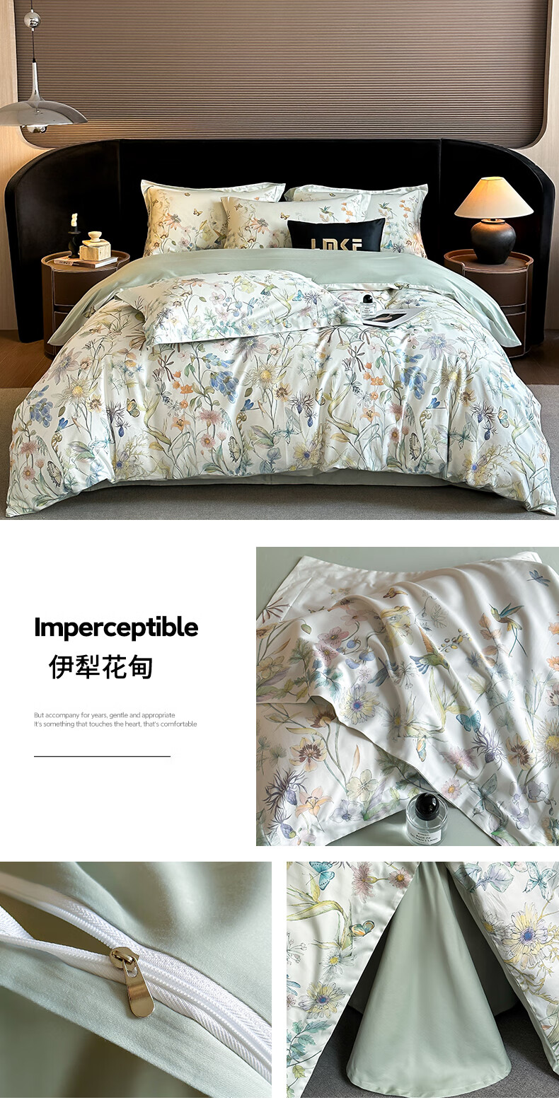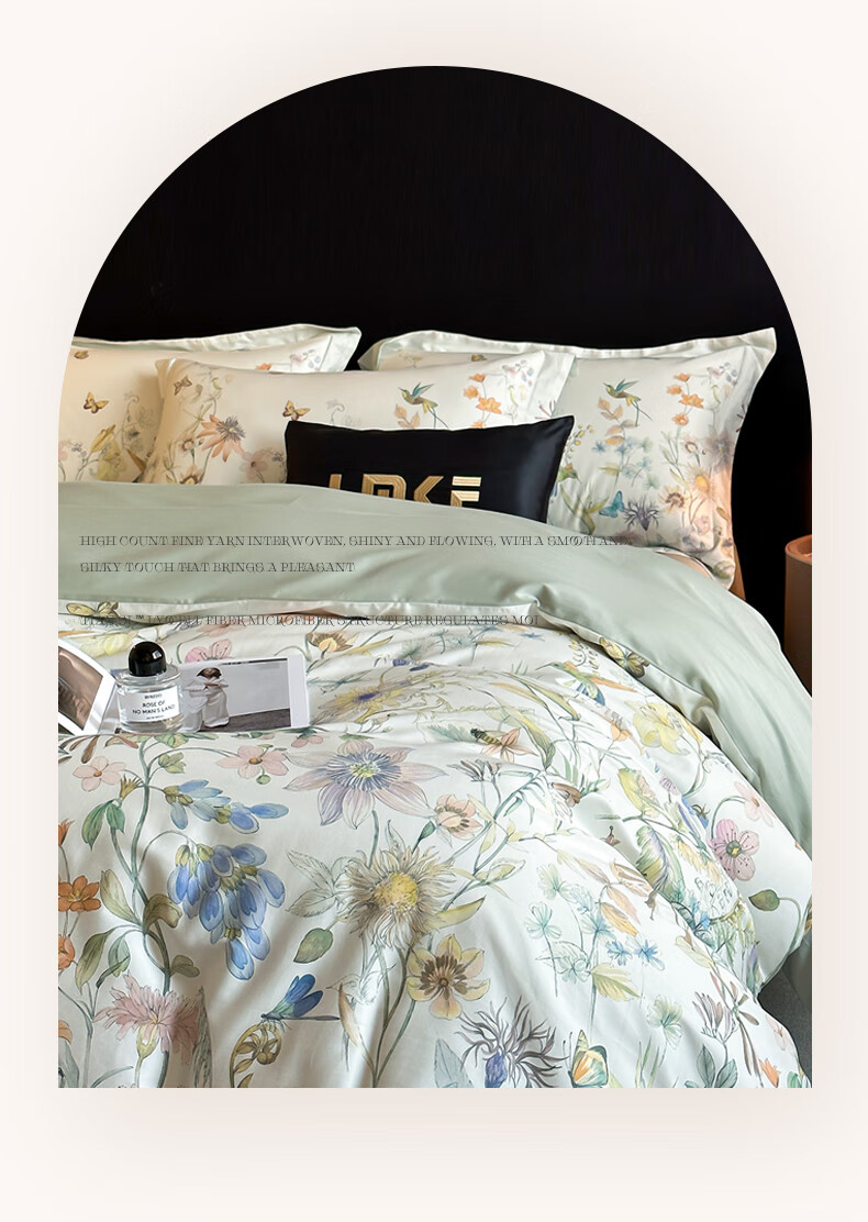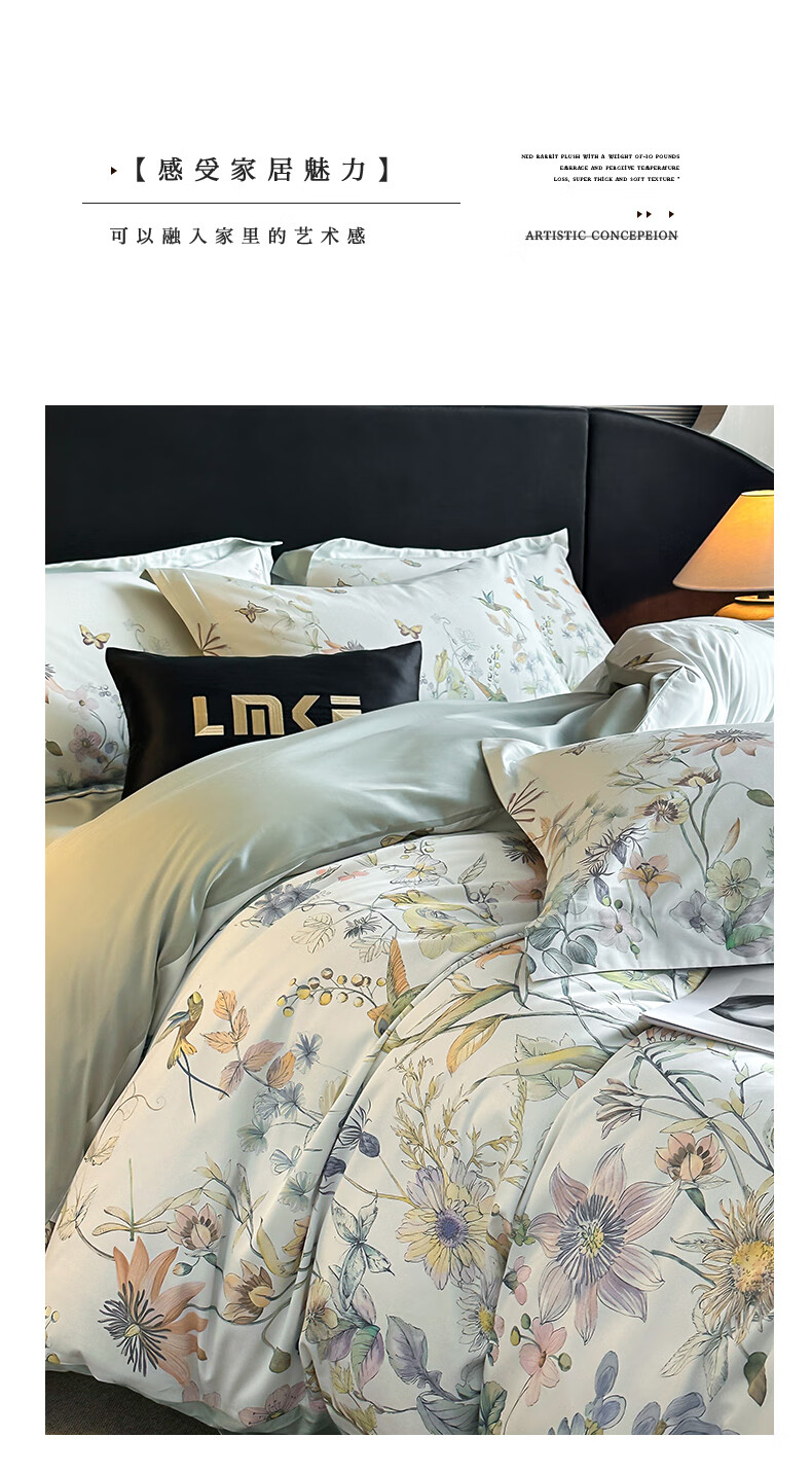 甄选60支全棉面料,手感细腻亲肤,透气贴肤;呵护舒适睡眠,活性印花工艺,色彩靓丽,色牢度高;不易起球透气贴肤,细腻柔软
