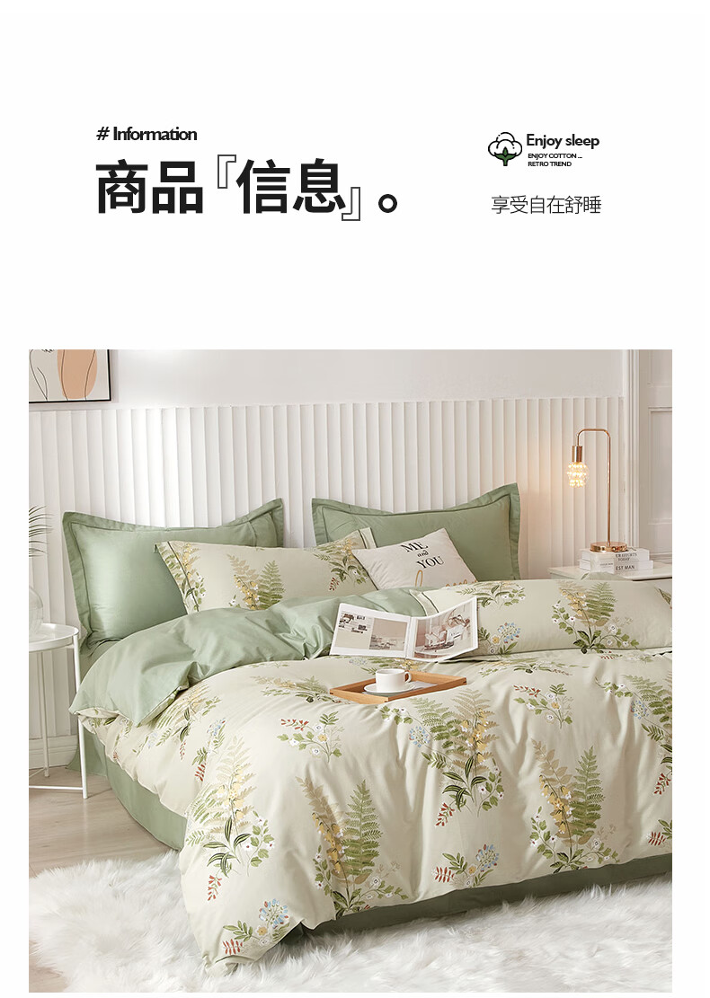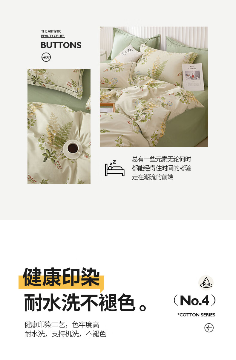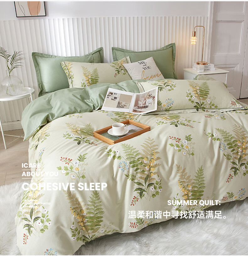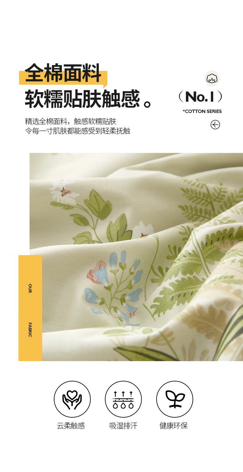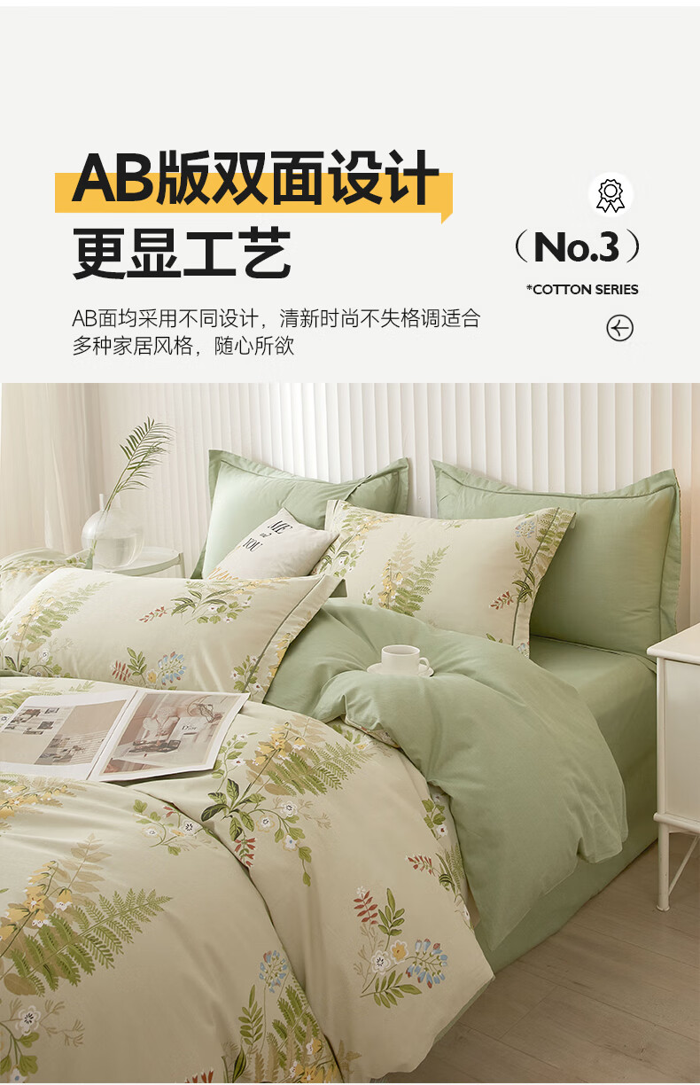 优选全棉高密度织造面料;AB版双面设计,活性印染工艺;清新时尚不失格调适合多种家居风格,随心所欲。