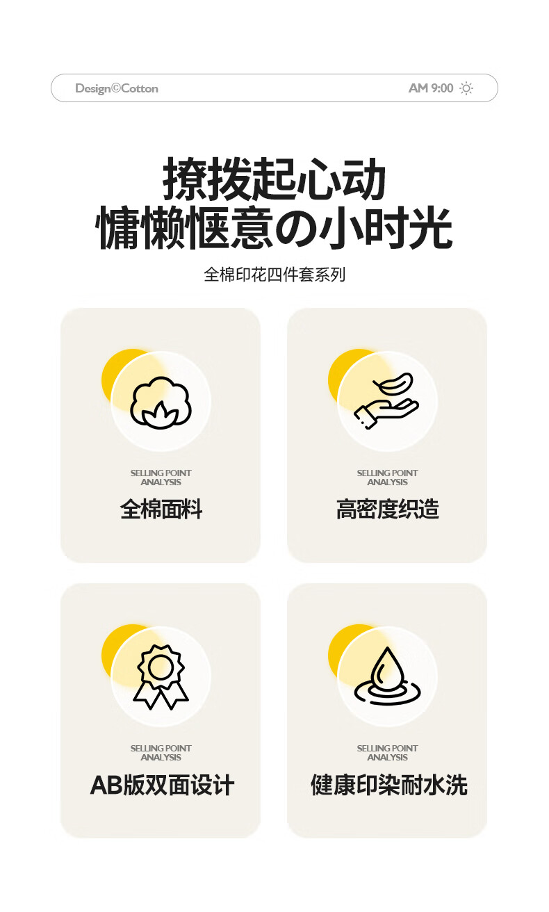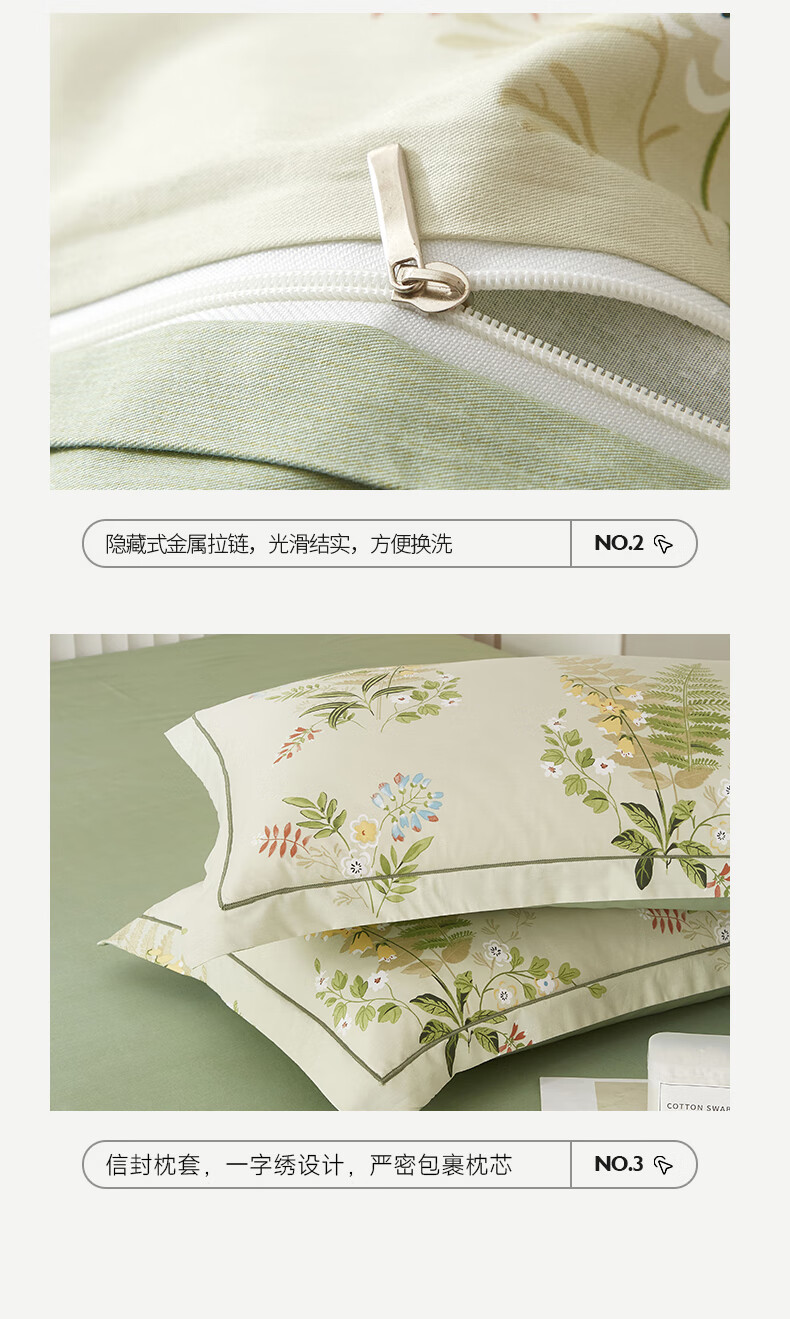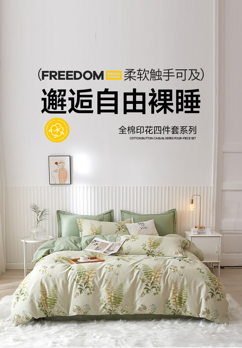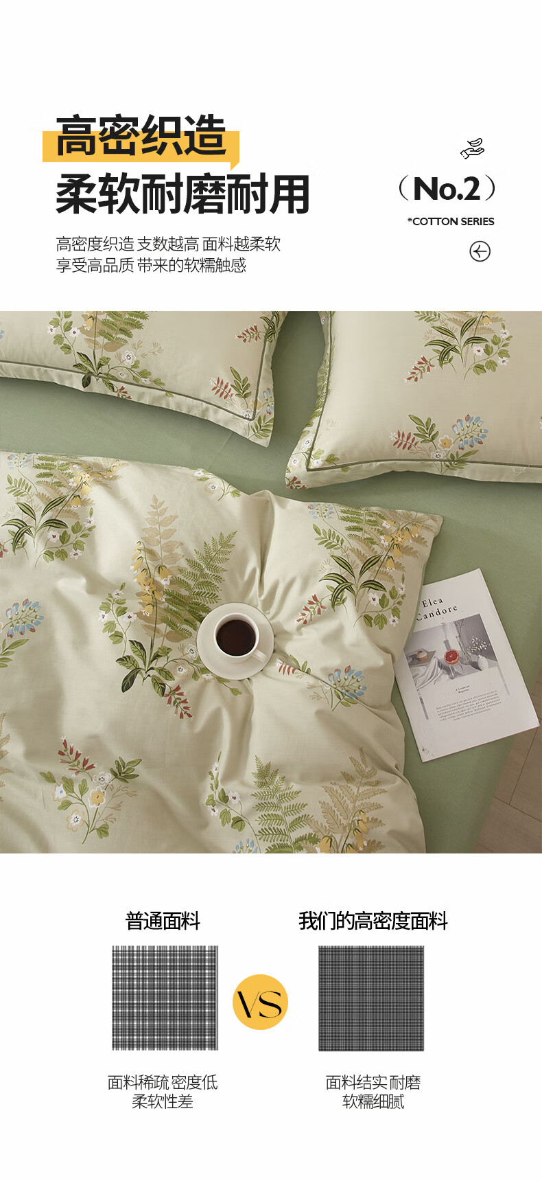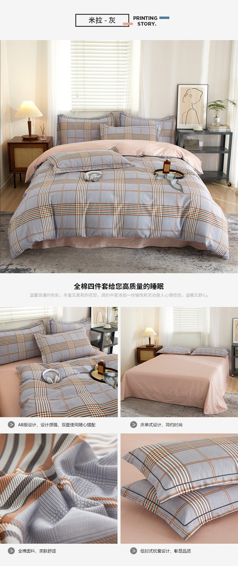 优选全棉高密度织造面料;AB版双面设计,活性印染工艺;清新时尚不失格调适合多种家居风格,随心所欲。