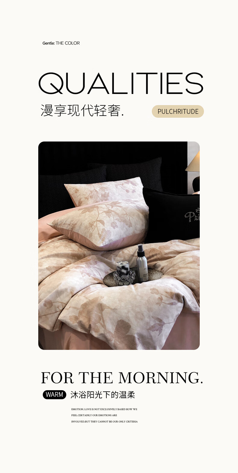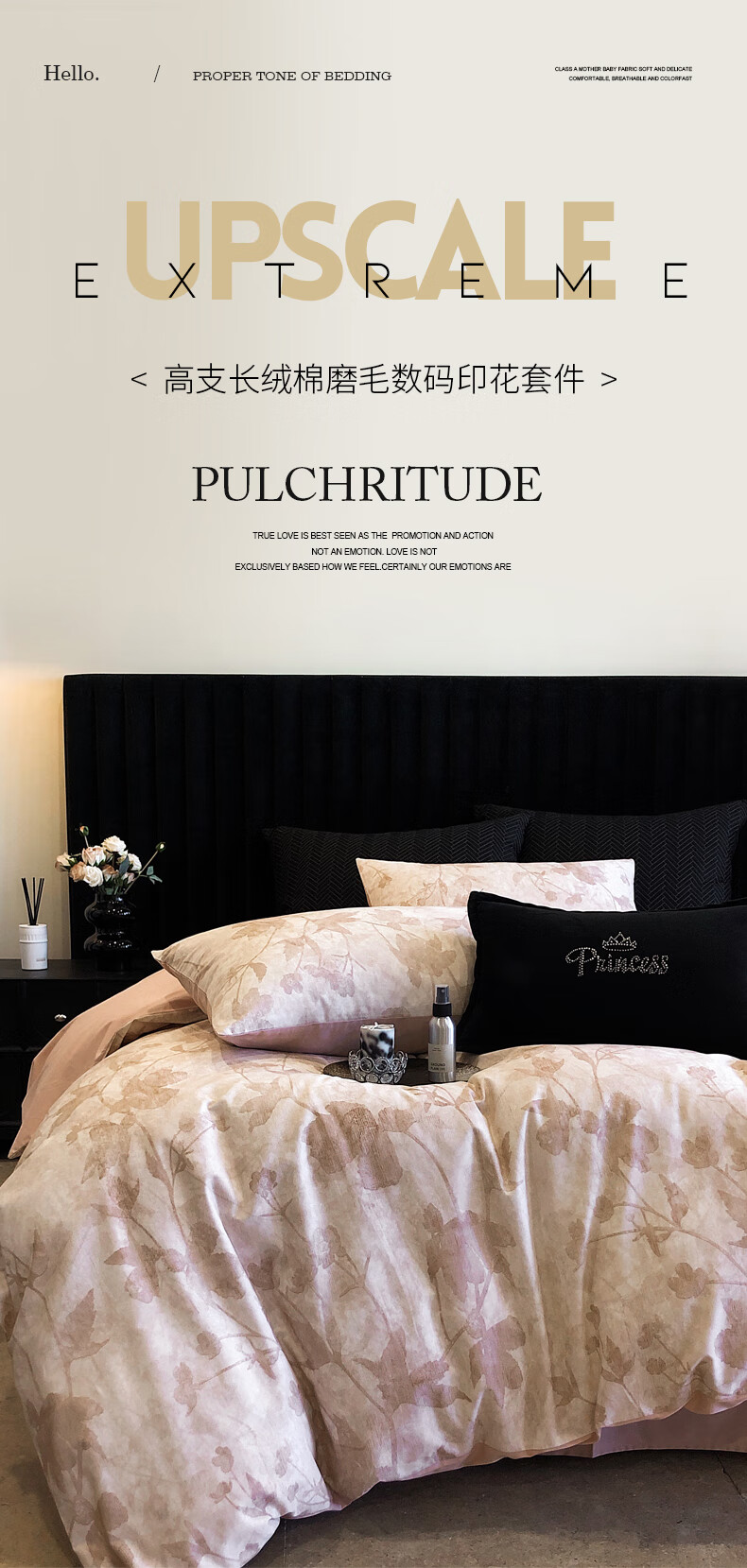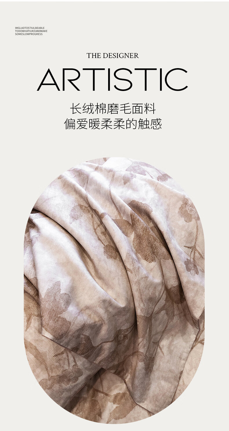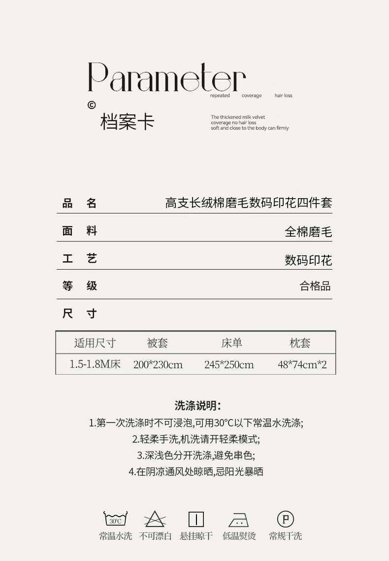 数码全棉磨毛面料,贴合肌肤零距离,顺滑柔软保暖性好;给予肌肤软糯触感,数码印花工艺;每一个角度色感与质感俱佳颜色均匀不易褪色是它历久弥