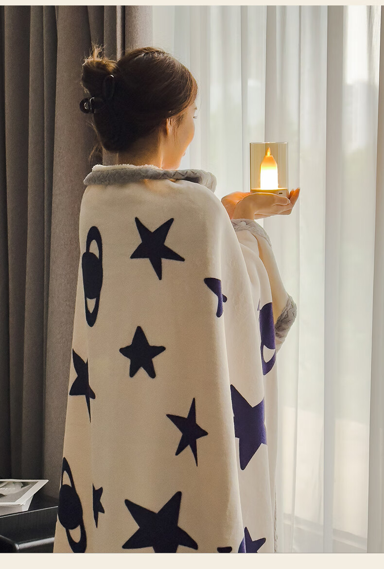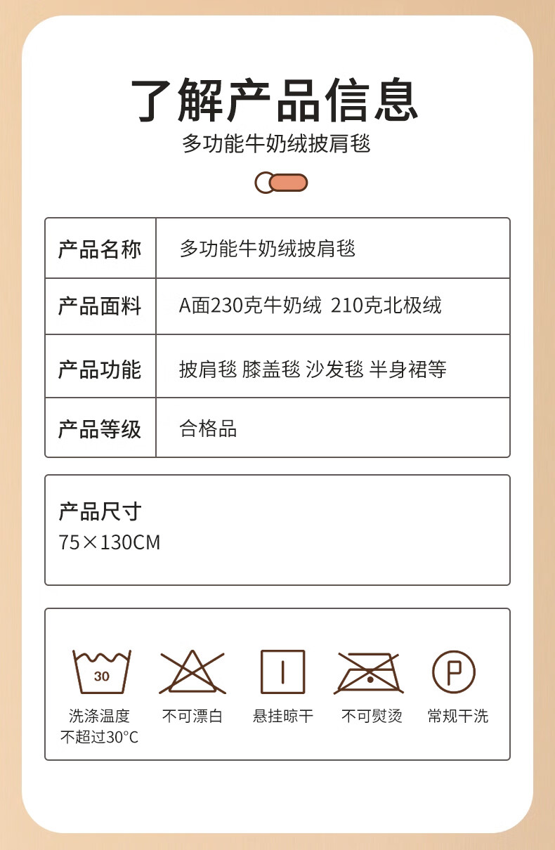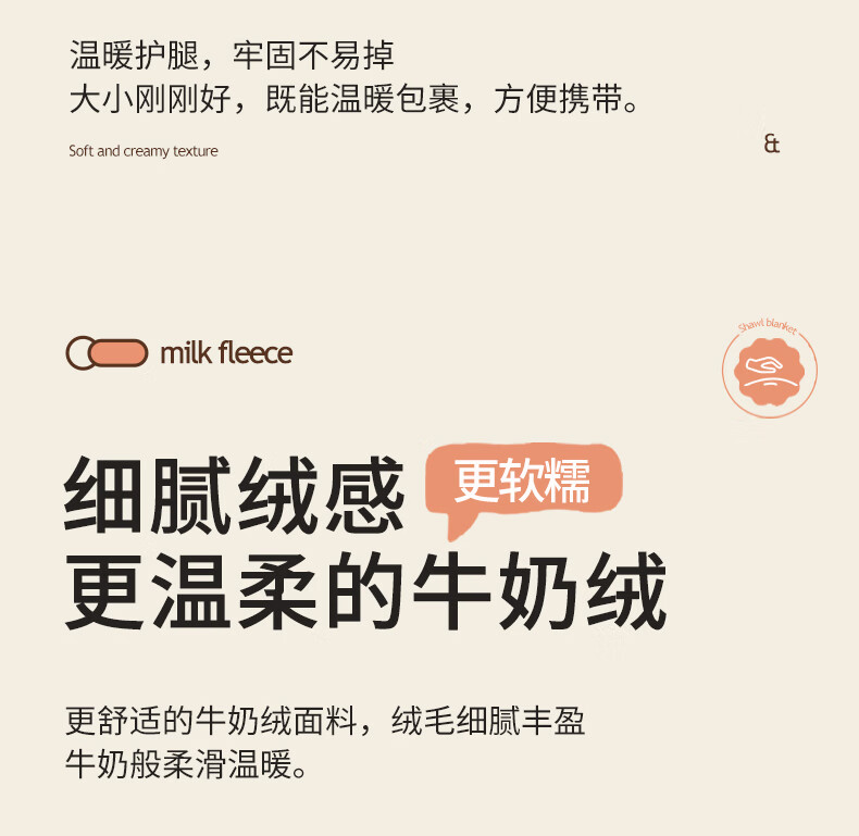温柔拥抱爱不释手的软糯,小尺寸纽扣设计更方便;毯子不只是毯子,百搭造型;可将毯子披在肩上可以是儿童学习写字毯等