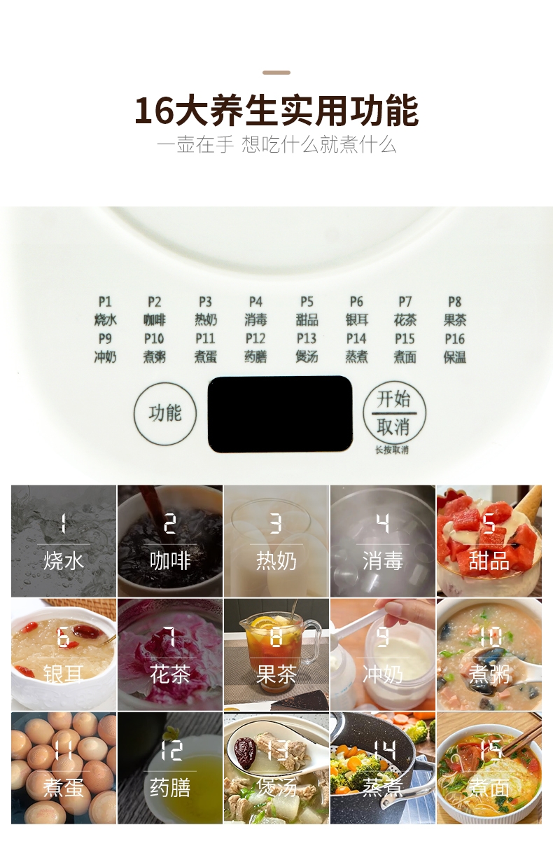 附加功能:自动保温,定时预约,定时