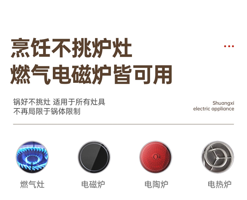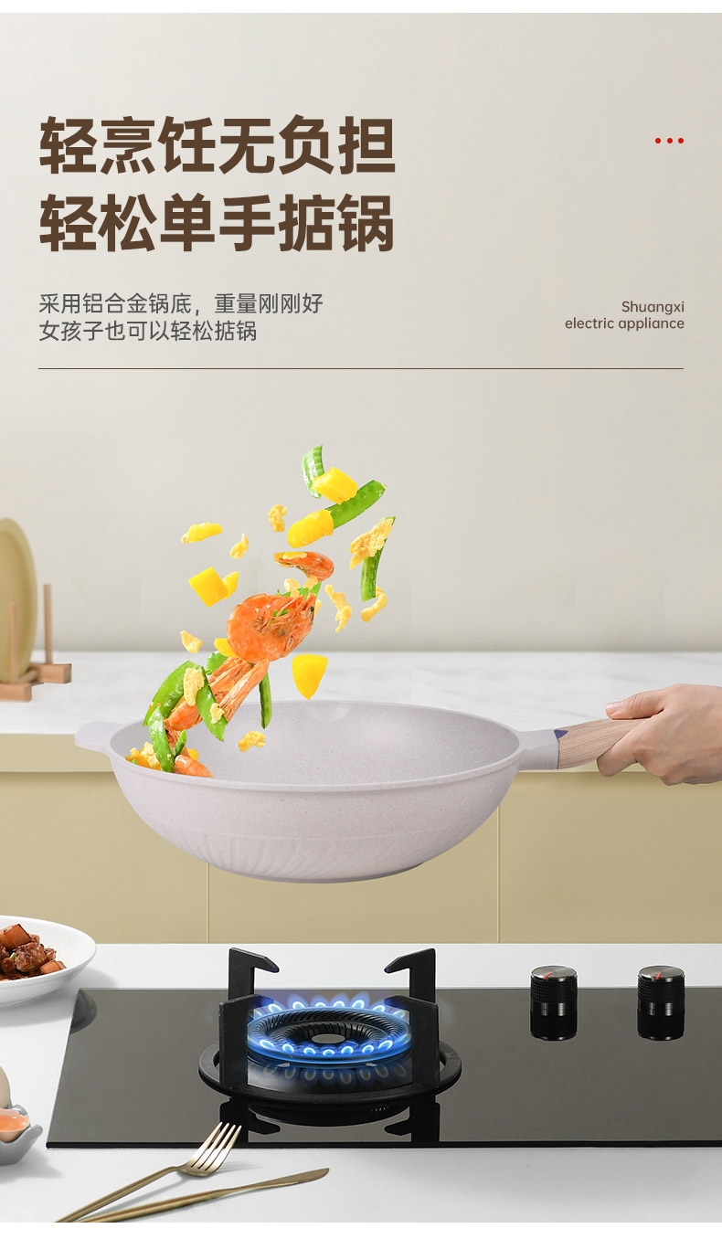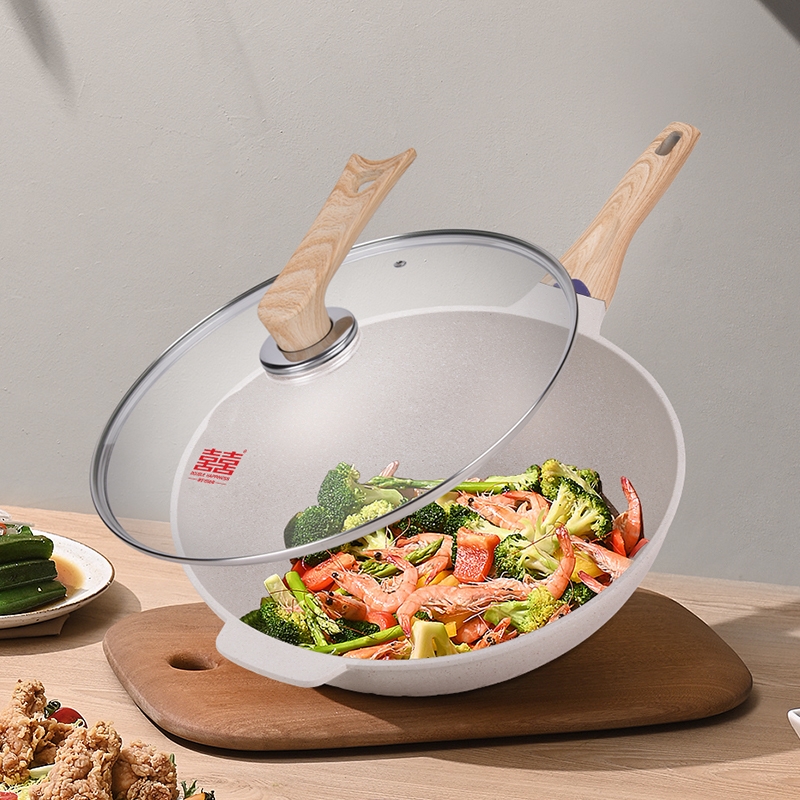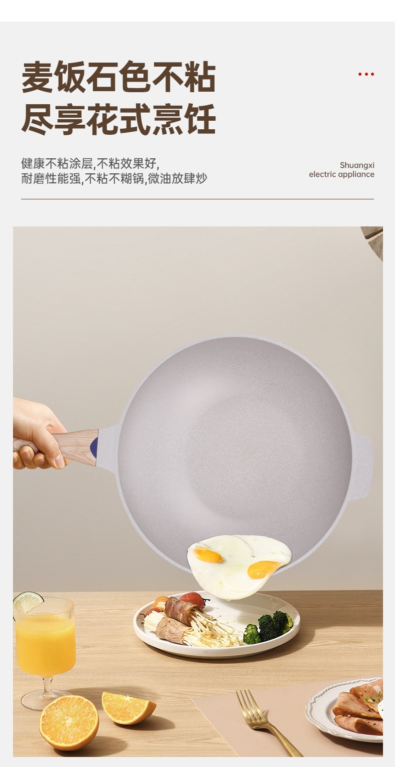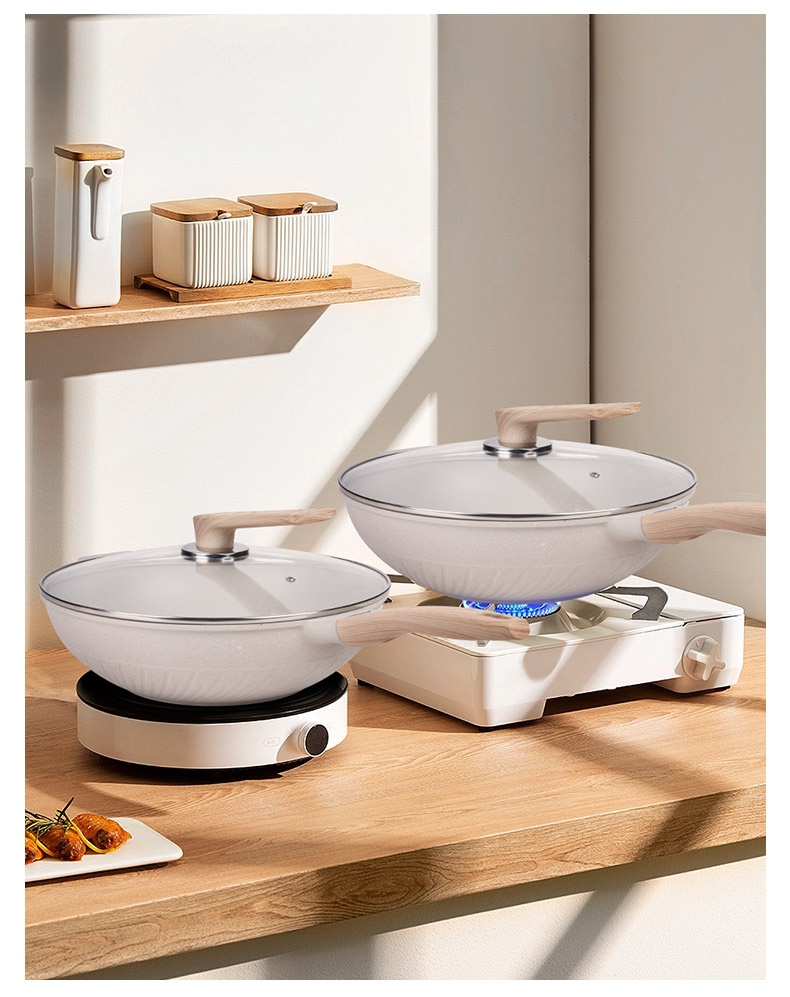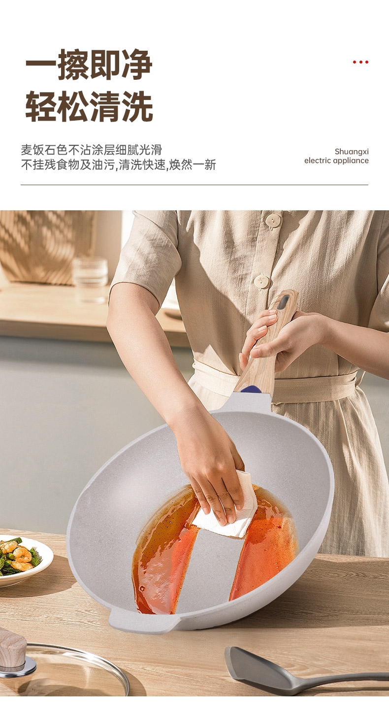 麦饭石仿荷叶不粘工艺,易于打理;一体压铸成型,不藏污垢;配可视钢化玻璃盖,美味看得见;底厚壁薄,导热迅速,均匀受热;复合底设计,不挑灶具