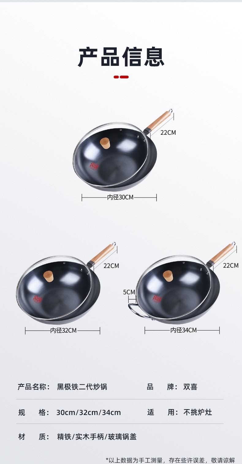 双喜 黑极铁2代套装炒锅CC-32JB01