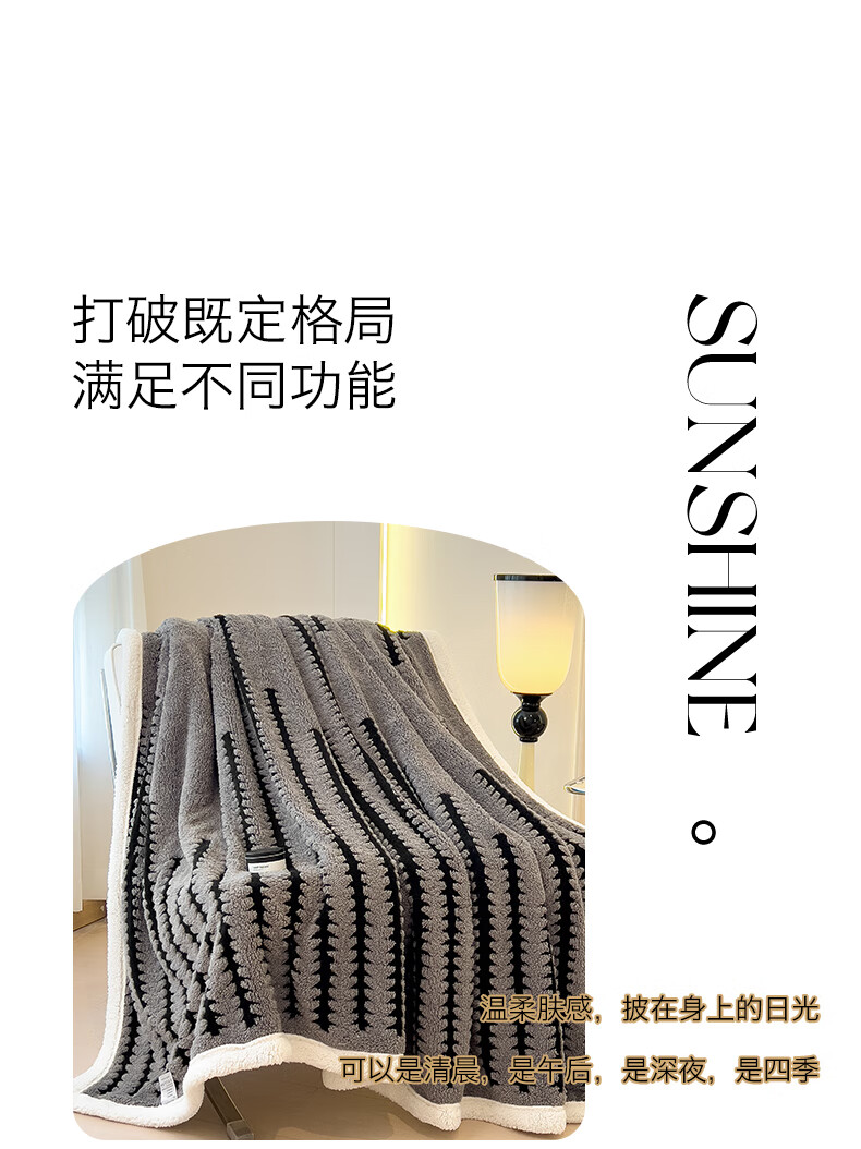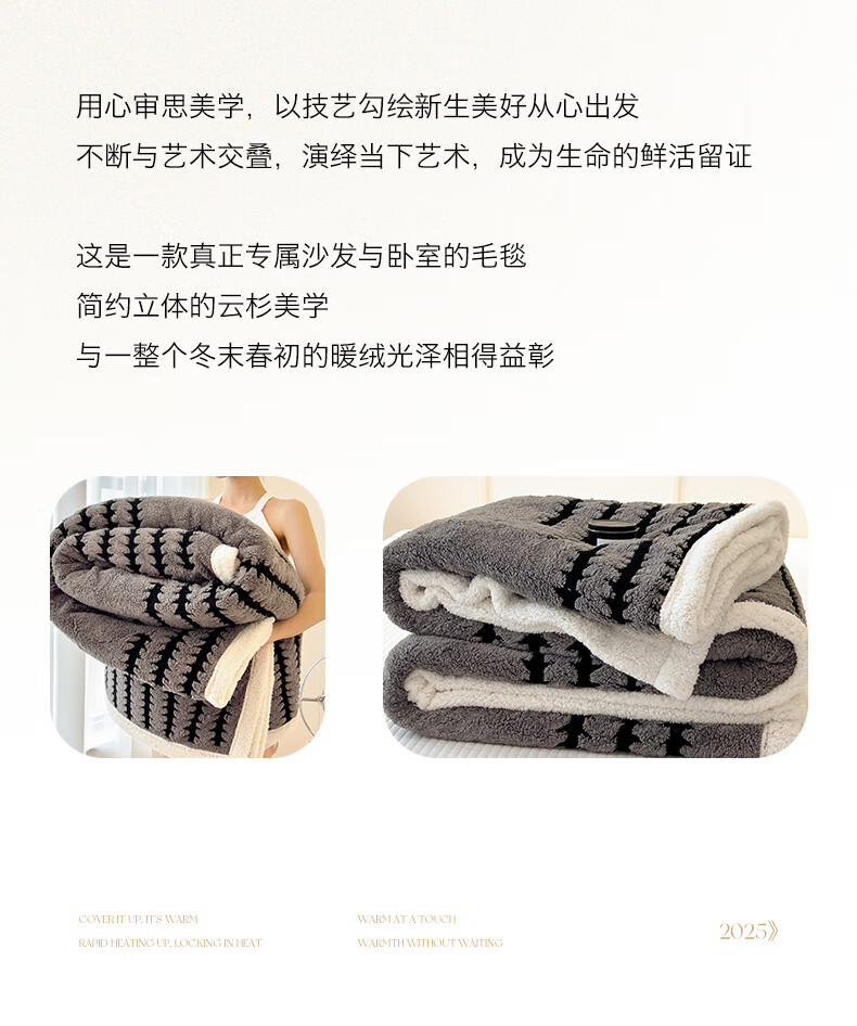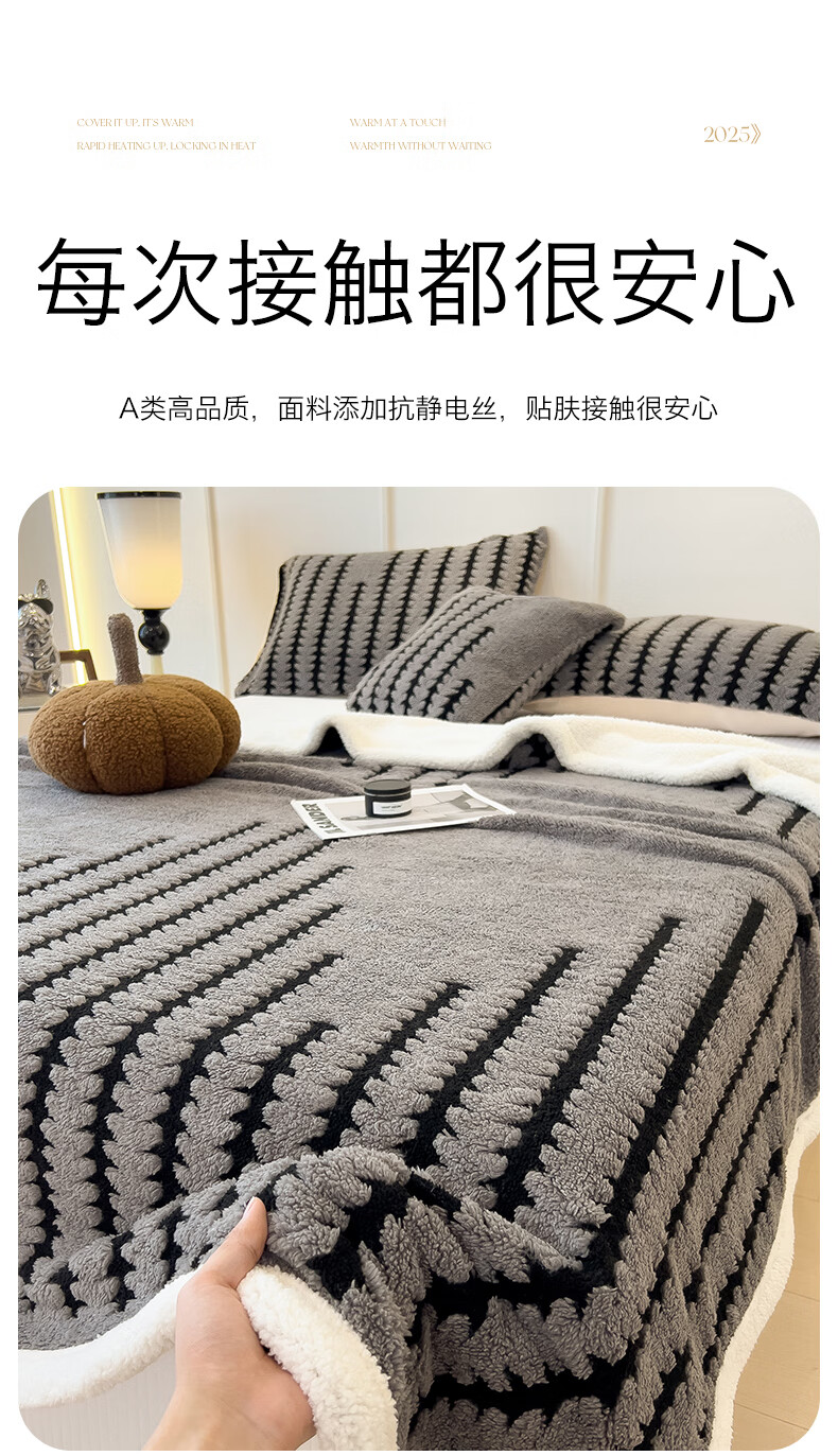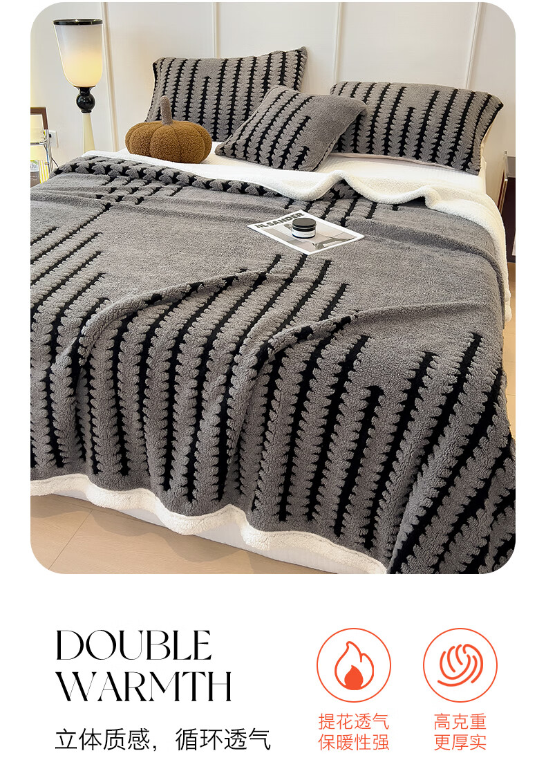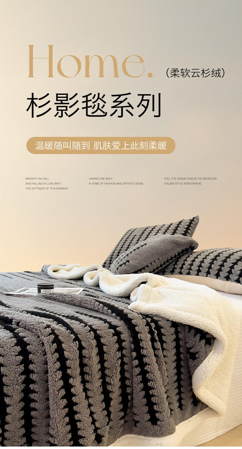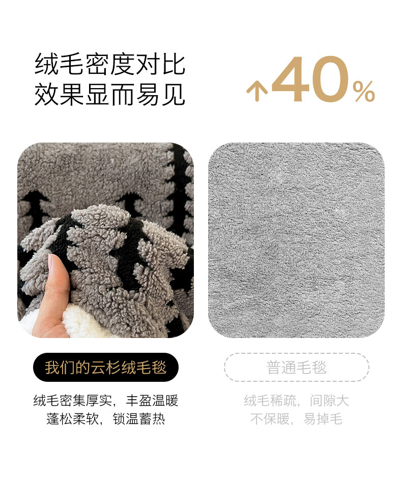 云杉绒毛毯,A版云杉绒,B版羊羔绒,;快速升温加厚保暖聚热,高克重加厚睡眠好保暖;绒毛密集厚实,丰盈蓬松柔软,厚实亲肤,锁温蓄热。