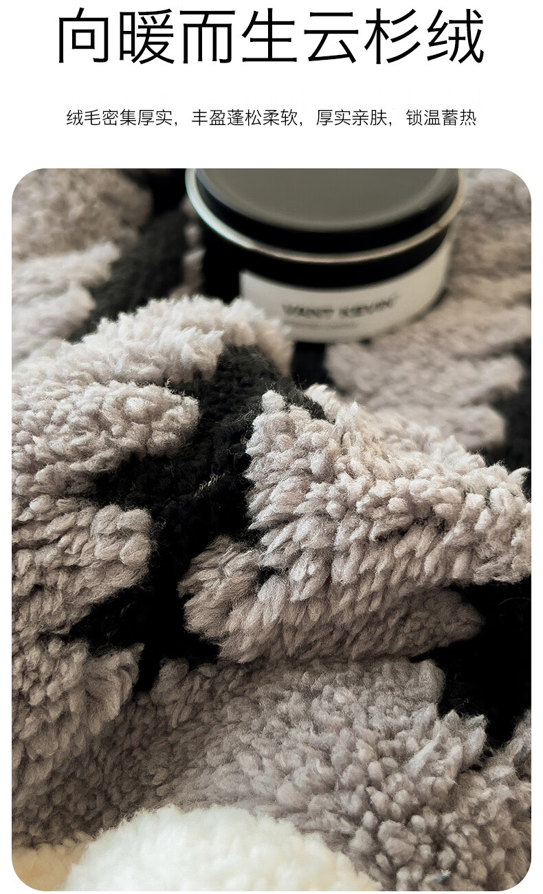 面料:云杉绒+羊羔绒(100%聚酯纤维复合型)