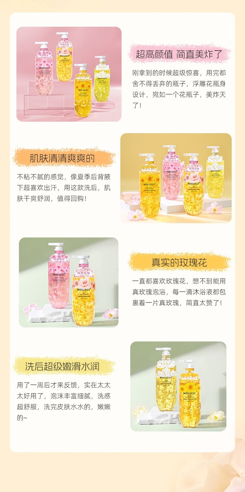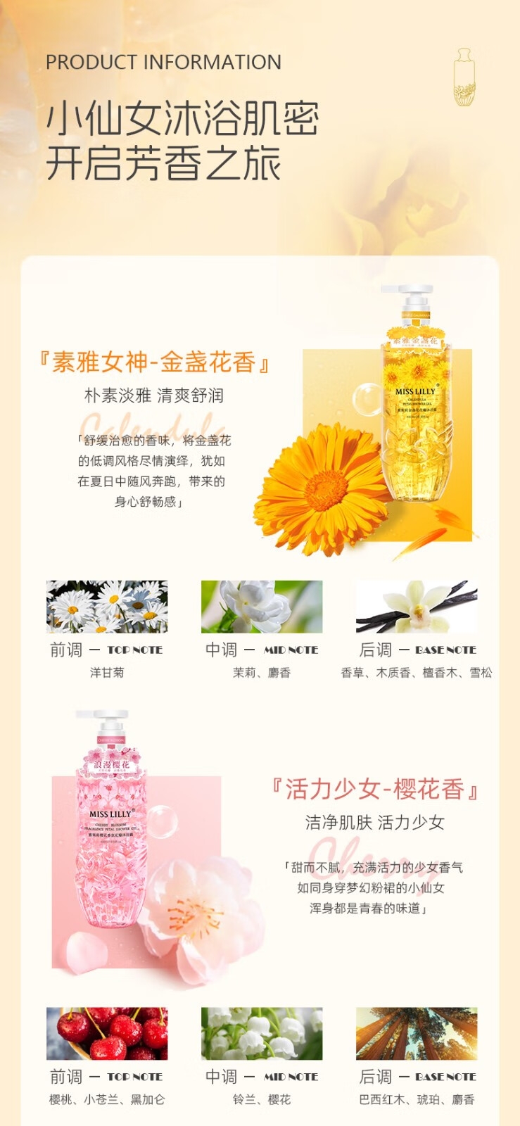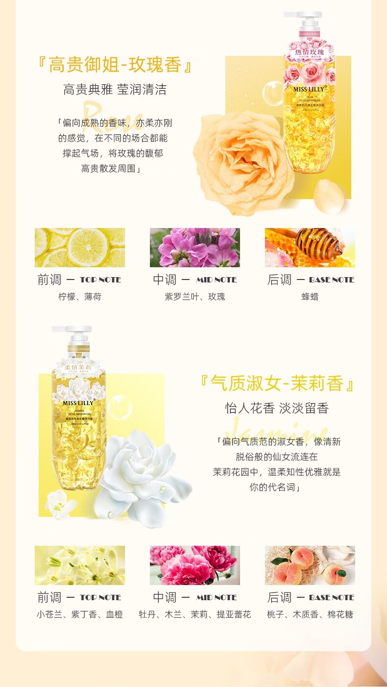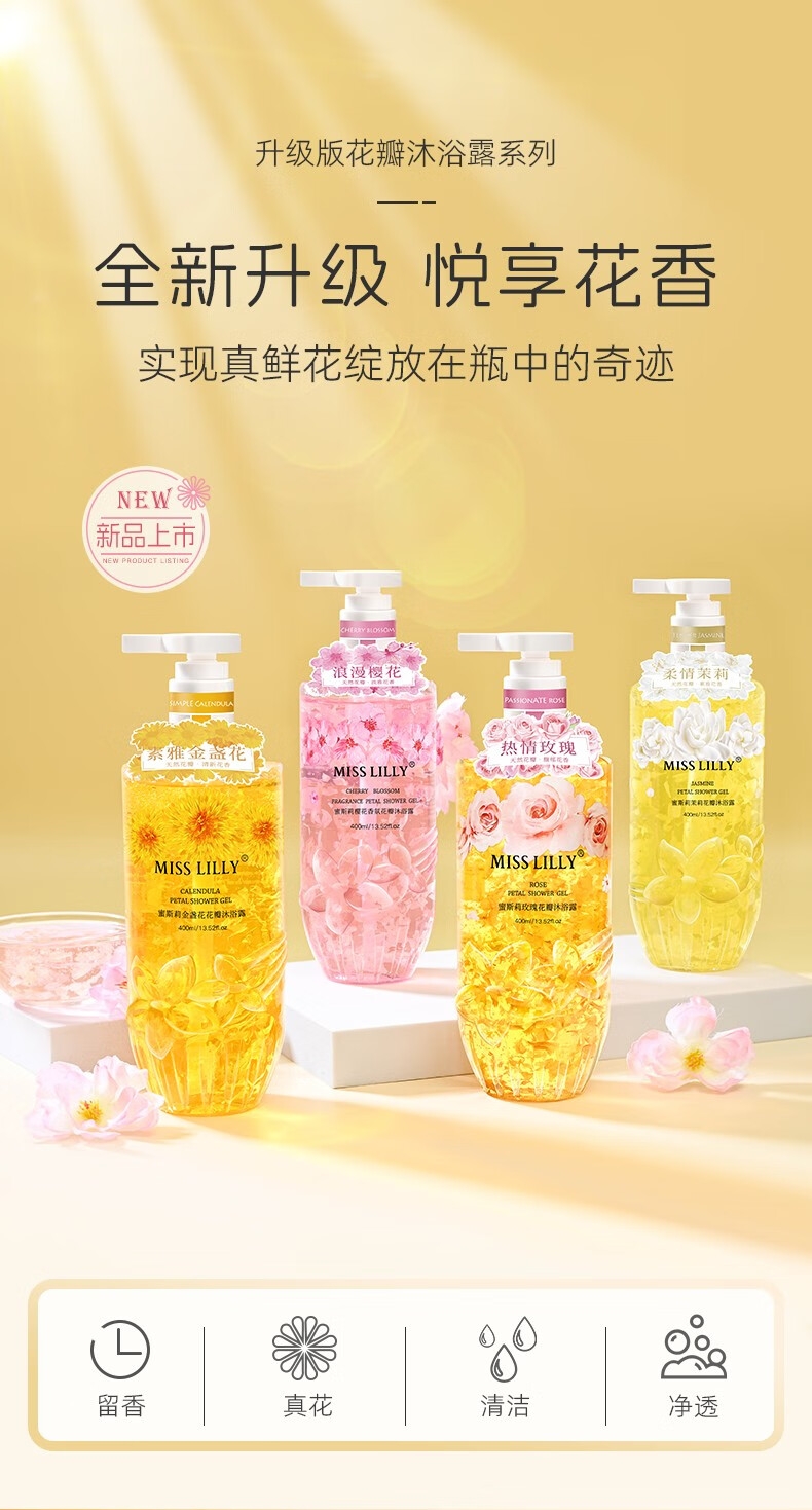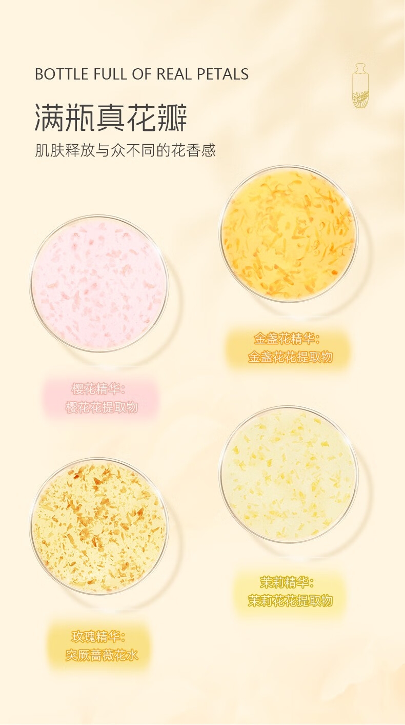 配置清单:蜜斯莉香氛花瓣沐浴露400ML*1(樱花&栀子香型随机)