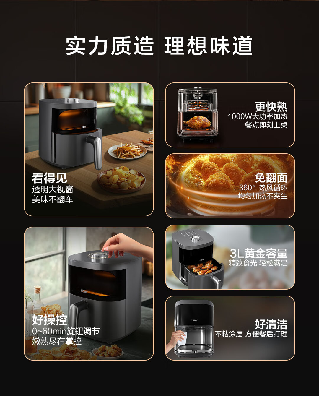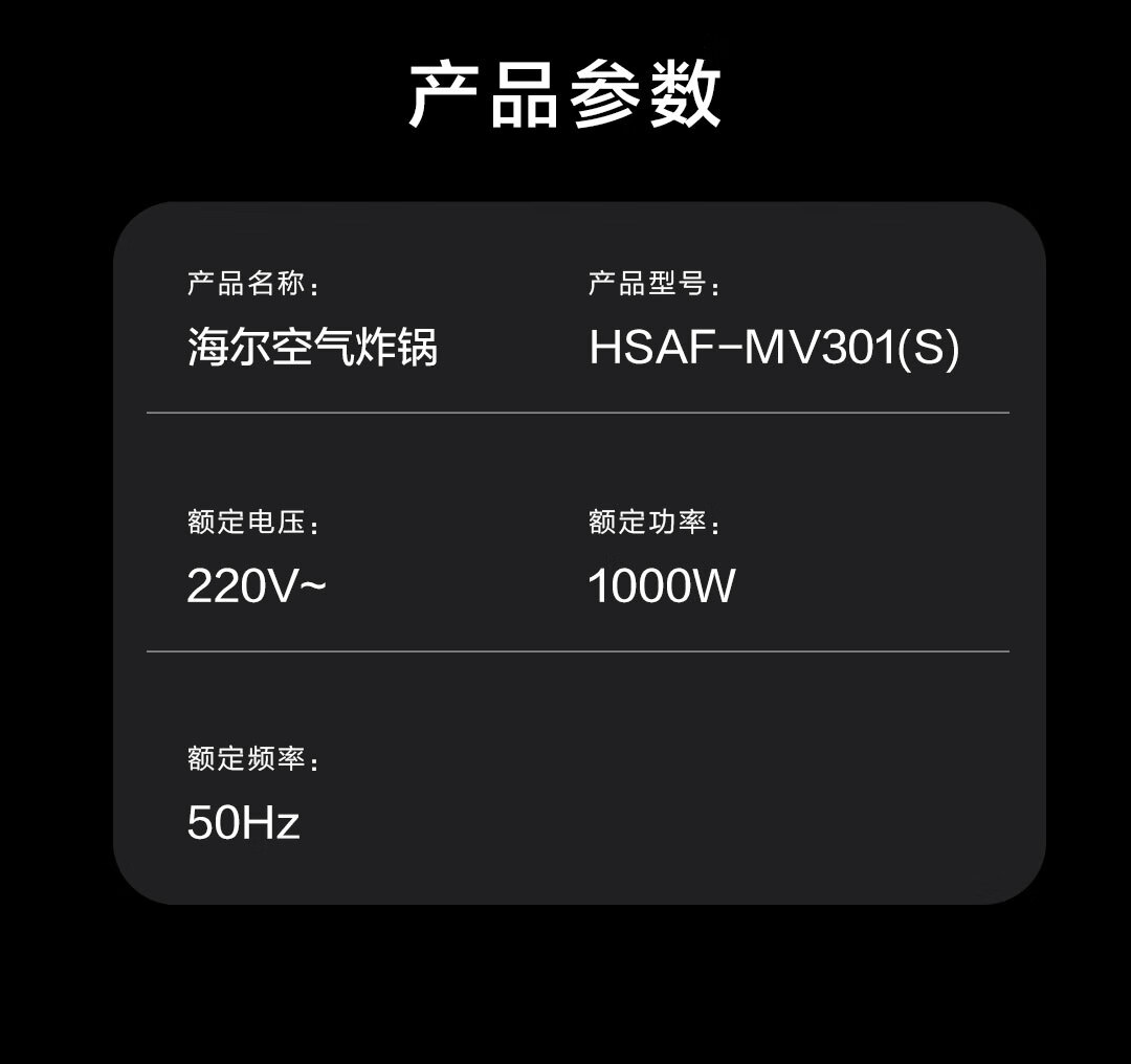 海尔 单选钮空气炸锅3LHSAF-MV301(S)