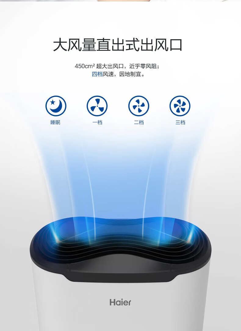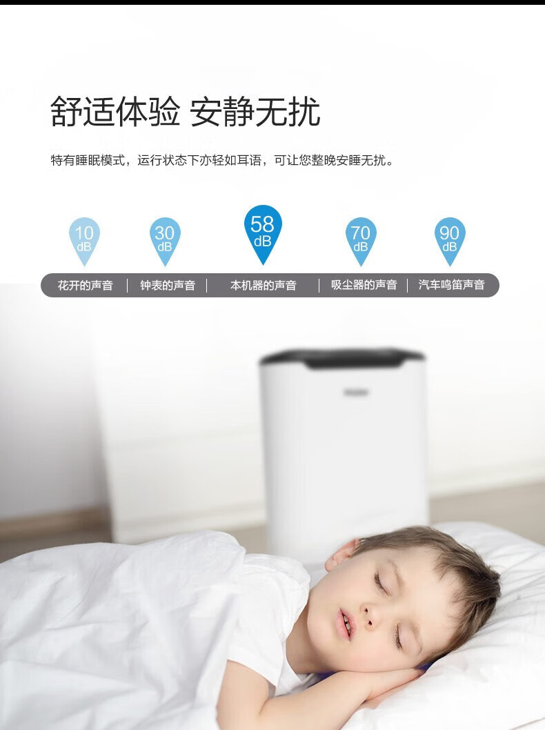 遵循动力学原理,风阻小,动力足,风量大,噪音低;超大出风口,近乎零风阻,三档风速,因地制宜;特有睡眠模式,净享舒适,安睡无忧
