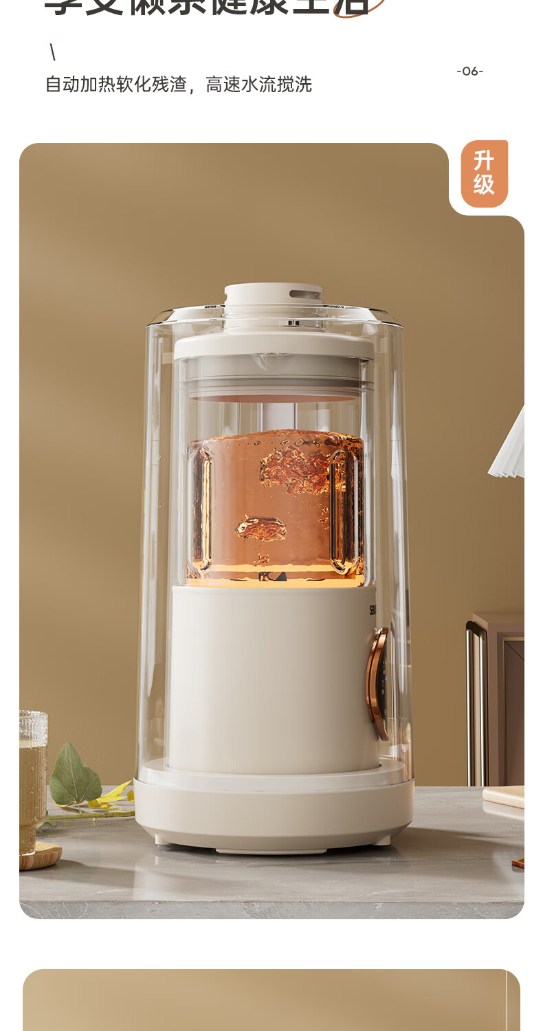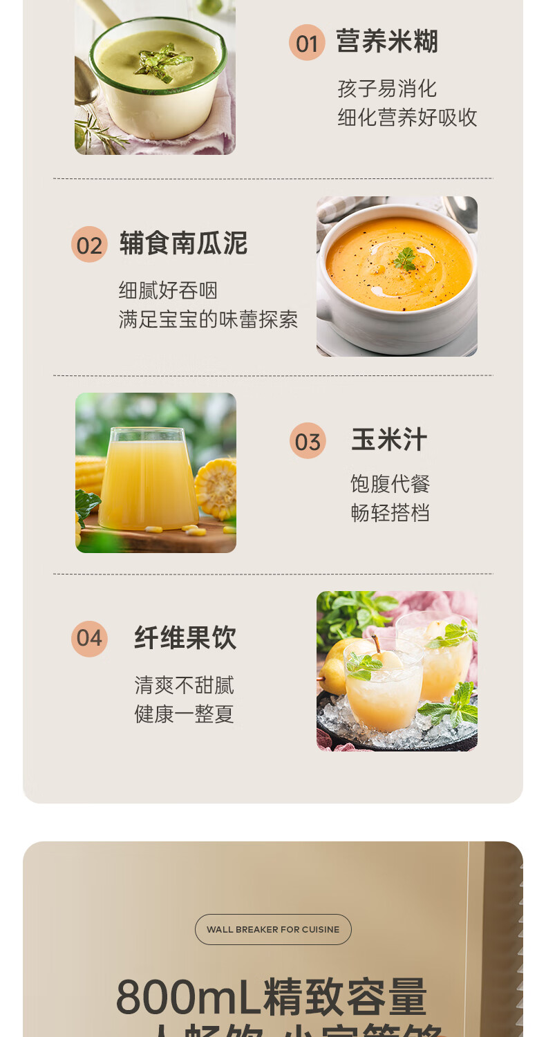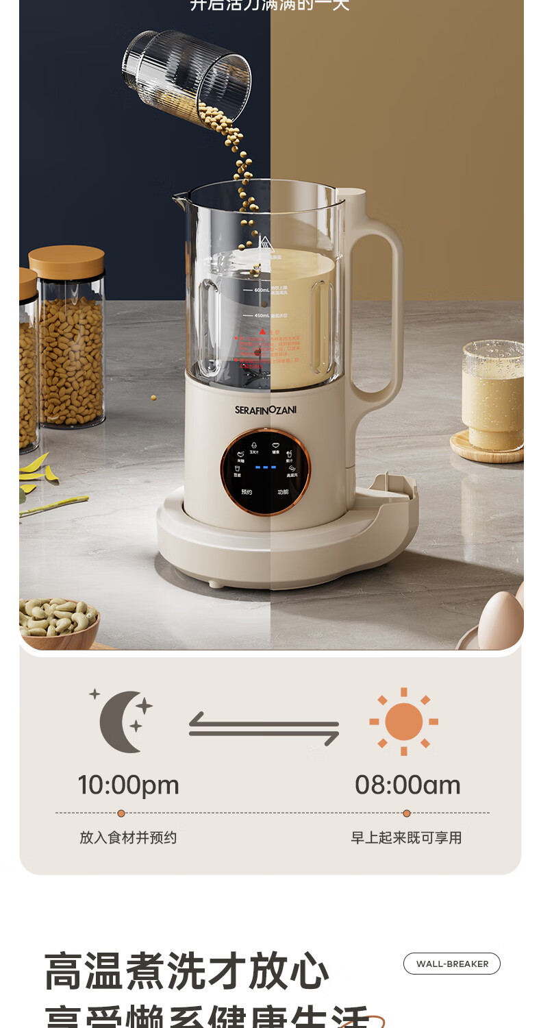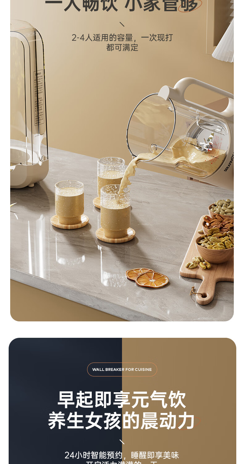静音功能,密封隔音罩防止噪音外泄,一体式杯体;自带高温清洗,清洗方便,告别异味;12叶304材质刀头,12叶不锈钢刀头,破壁更精细