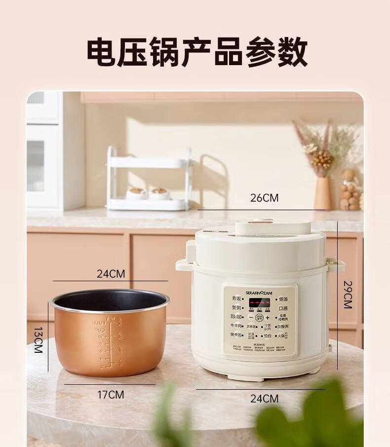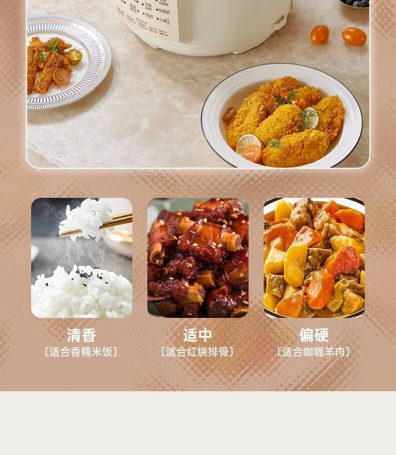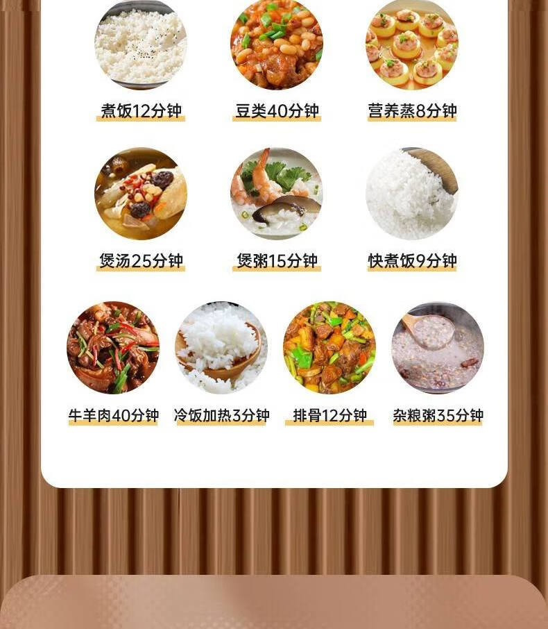时尚外观,简约美观,双层防烫机身,高颜值简洁外观;电脑版控制,智能更省心,四位数码显示;多功能菜单,美食更便捷