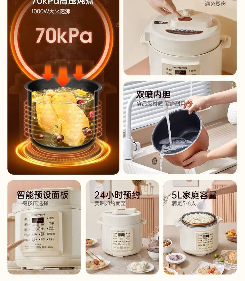 电压锅功能:煲蒸