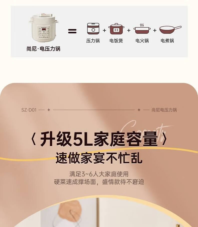 尚尼 微电脑智能操作电压力锅5LSZ-D01