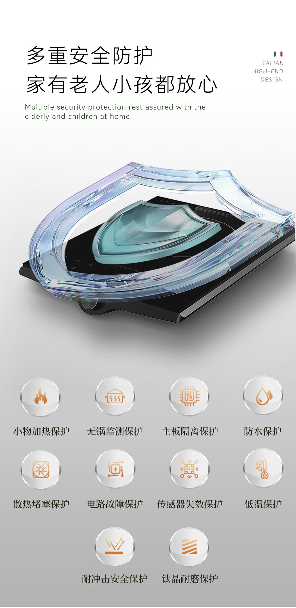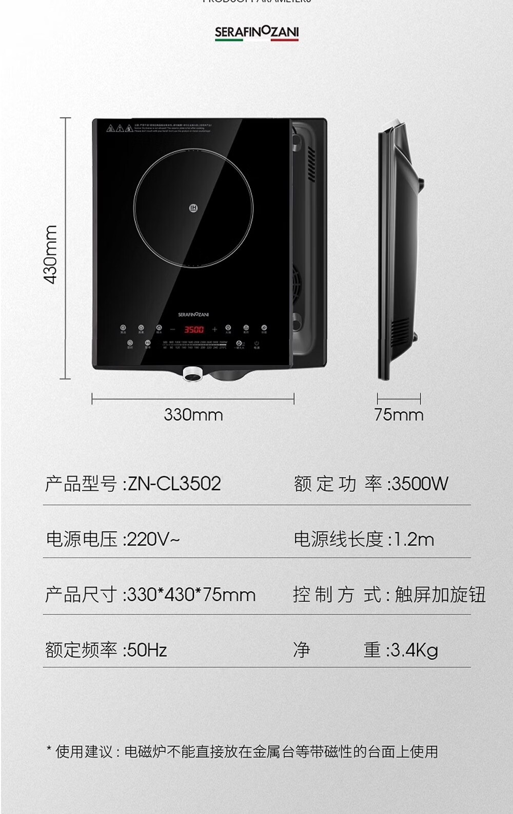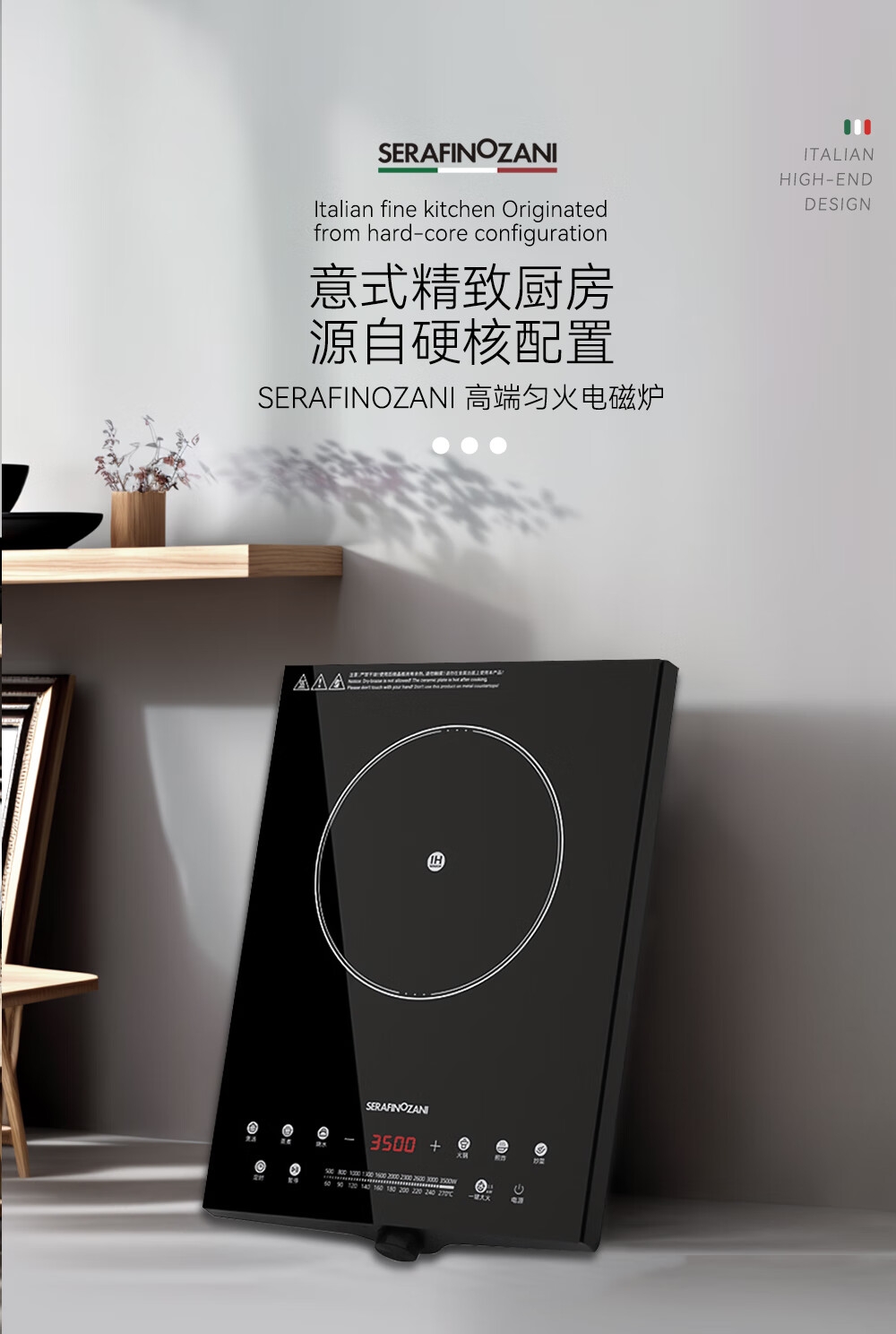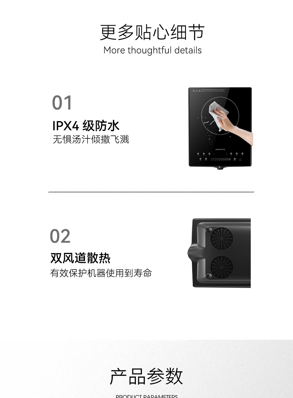 超大功率,3500W大火力;6大烹饪智能模式,触控旋钮双模式操控,10档火力;智能定时,0-4小时智能定时