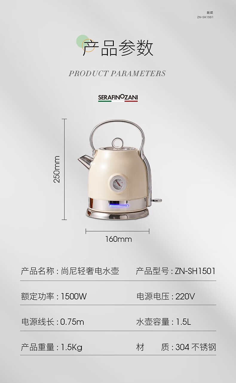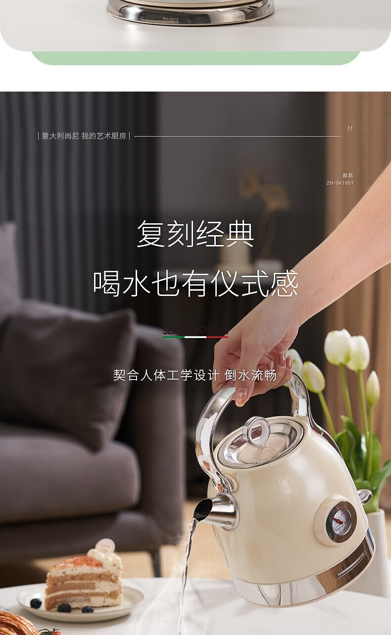 尚尼 轻奢复古电水壶1.5LZN-SH1501
