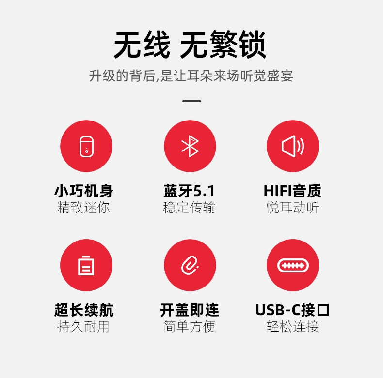 小巧机身,蓝牙5.1;Type-C接口;专属礼盒包装,送礼佳品。