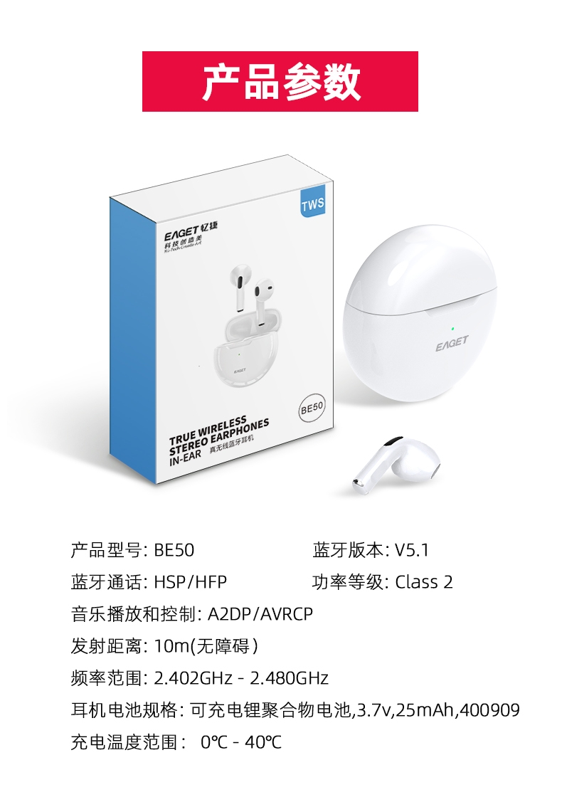 忆捷 EAGET蓝牙无线耳机BE50