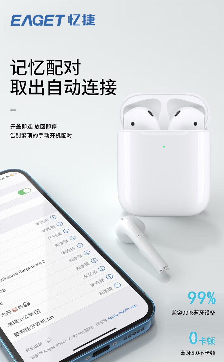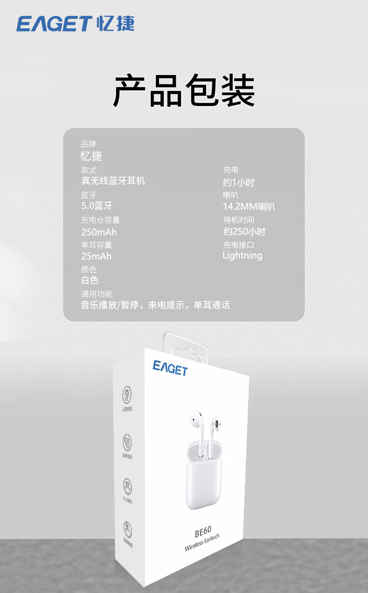 小巧机身,蓝牙5.0;Lightning接口;专属礼盒包装,送礼佳品。