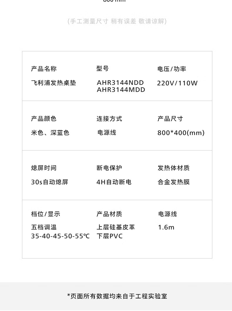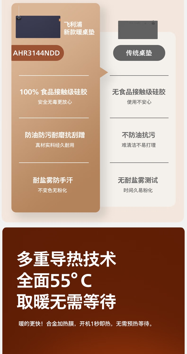 飞利浦 暖桌垫办公加热垫AHR3144NDD