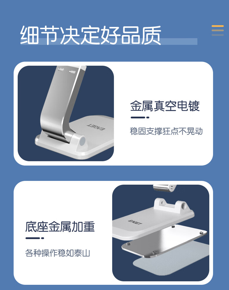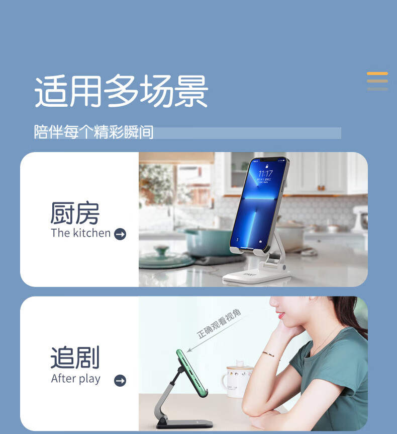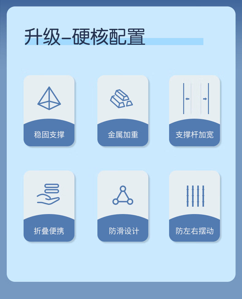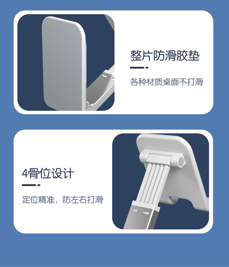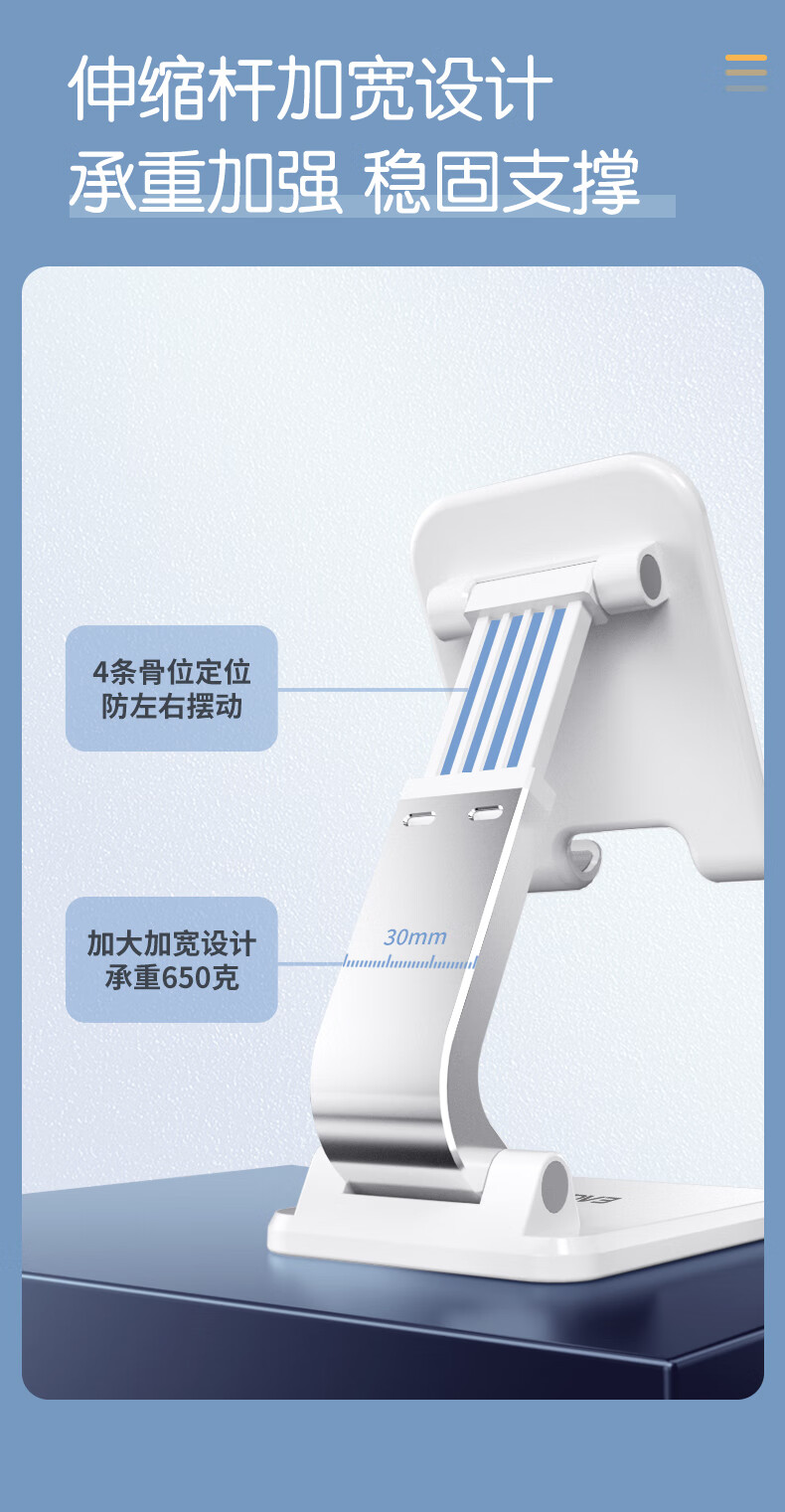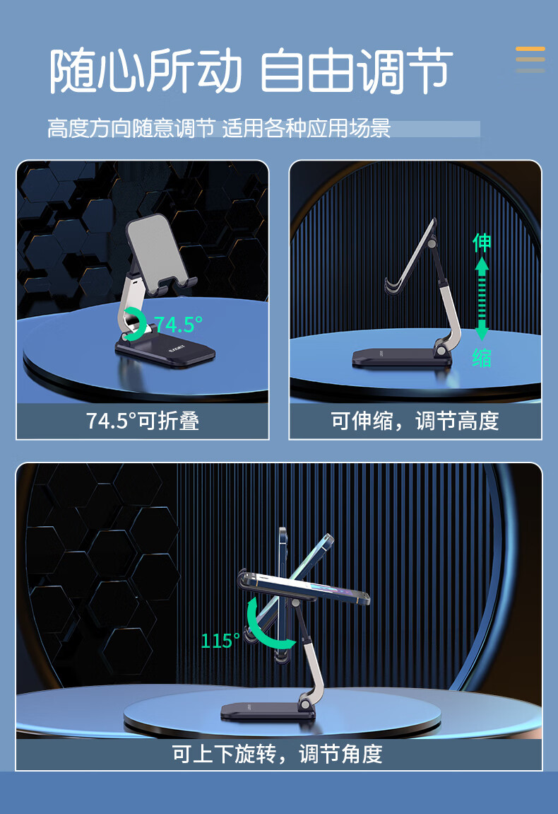 折叠伸缩,角度随心,精准定位伸缩杆;4角防滑垫,牢固不晃动,4骨位设计,双轴多角度旋转;便携单手操作