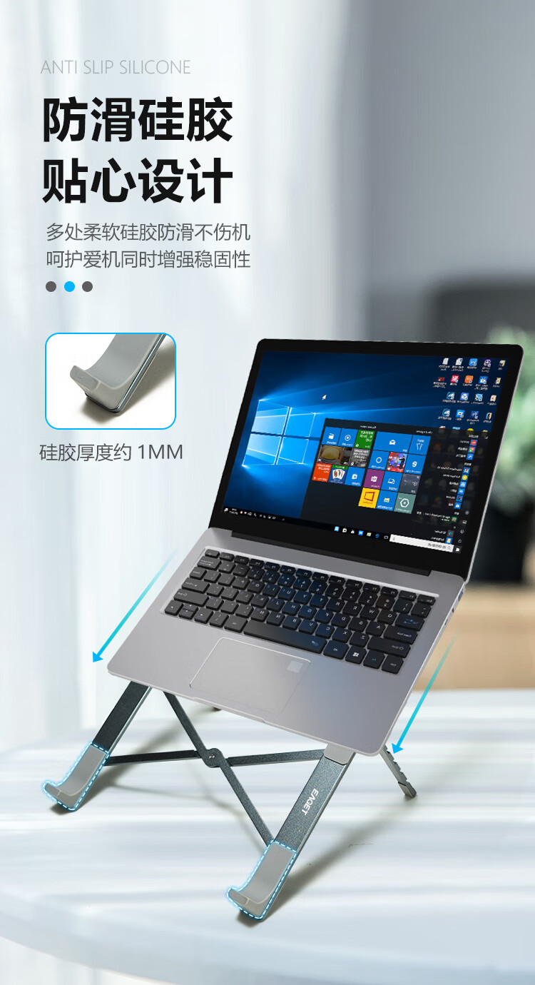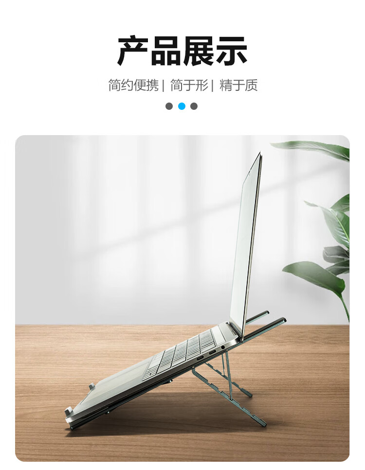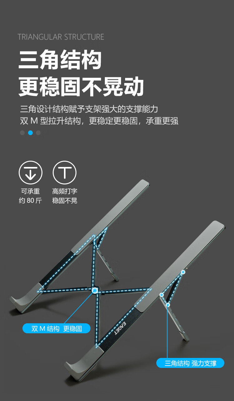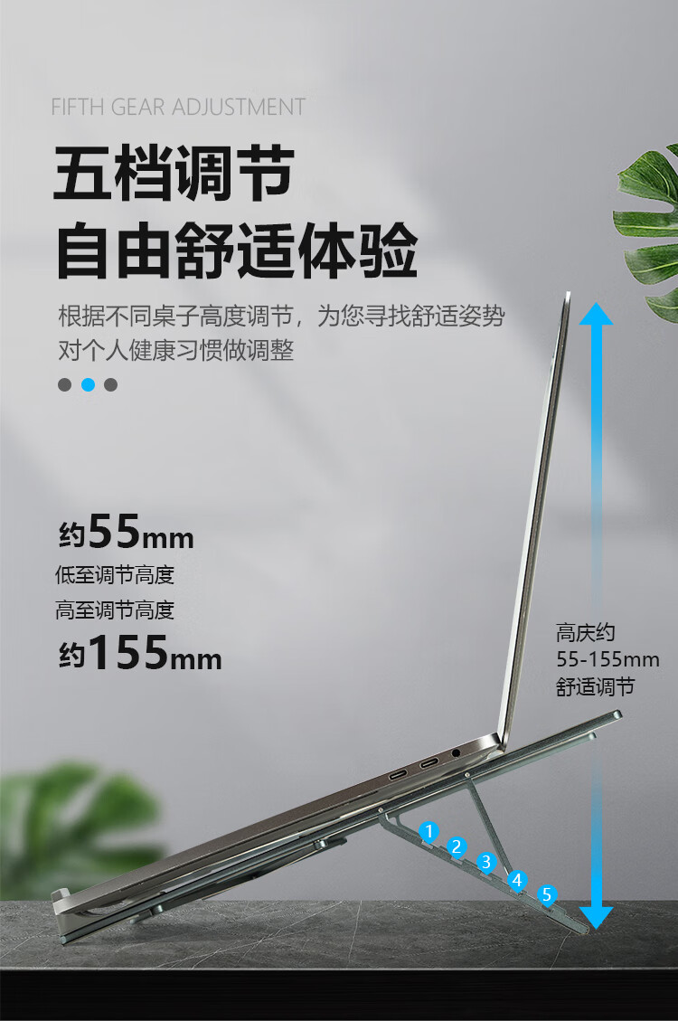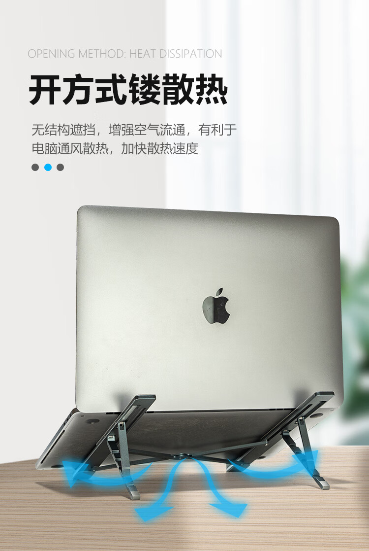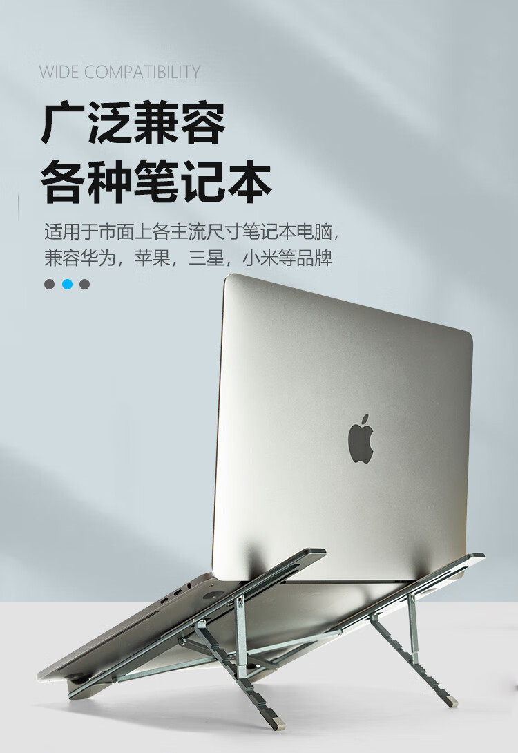 广泛兼容各种笔记本,开放式铝散热;五档调节,自由舒适体验;稳固三角支撑,更稳固不晃动